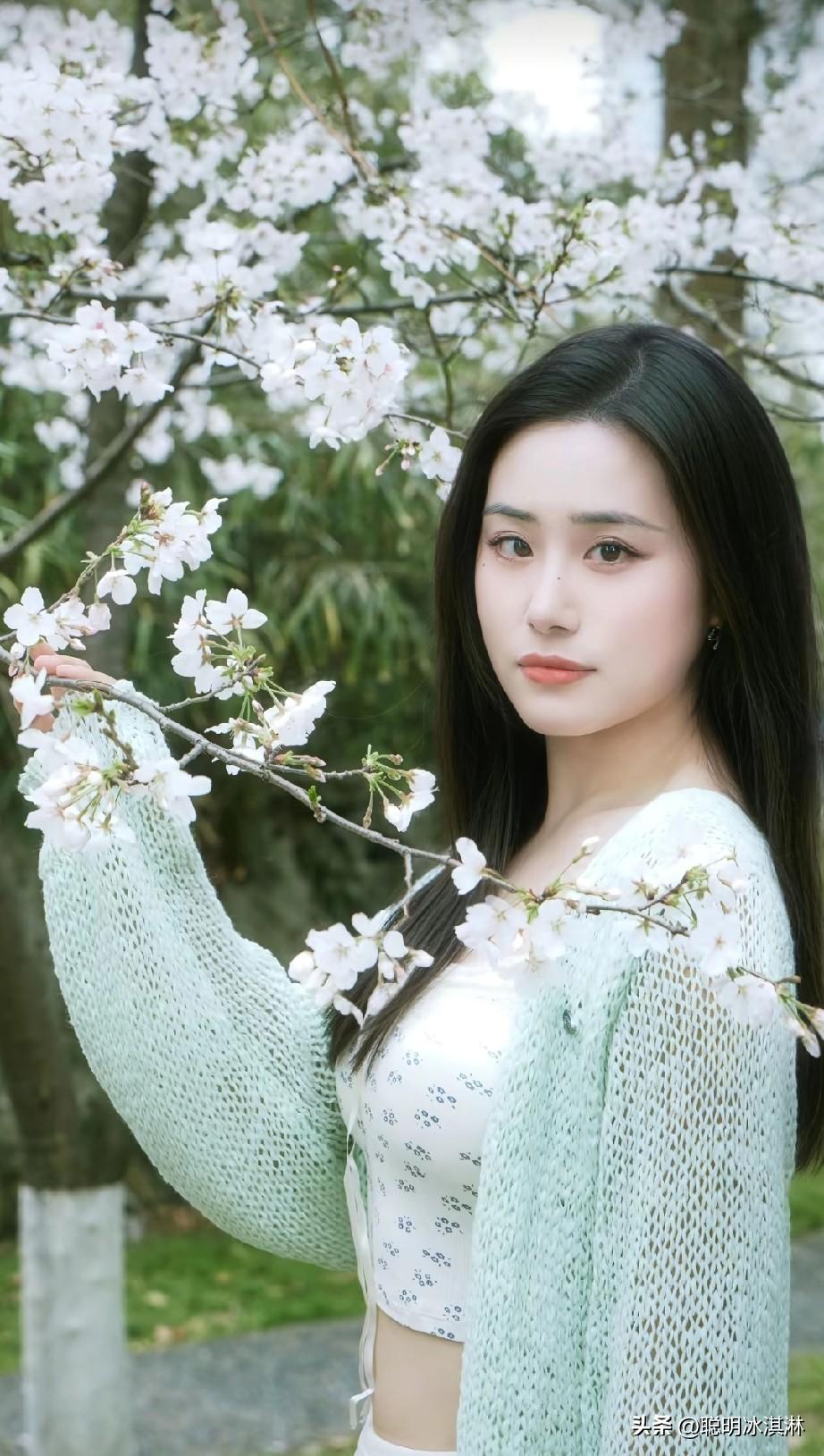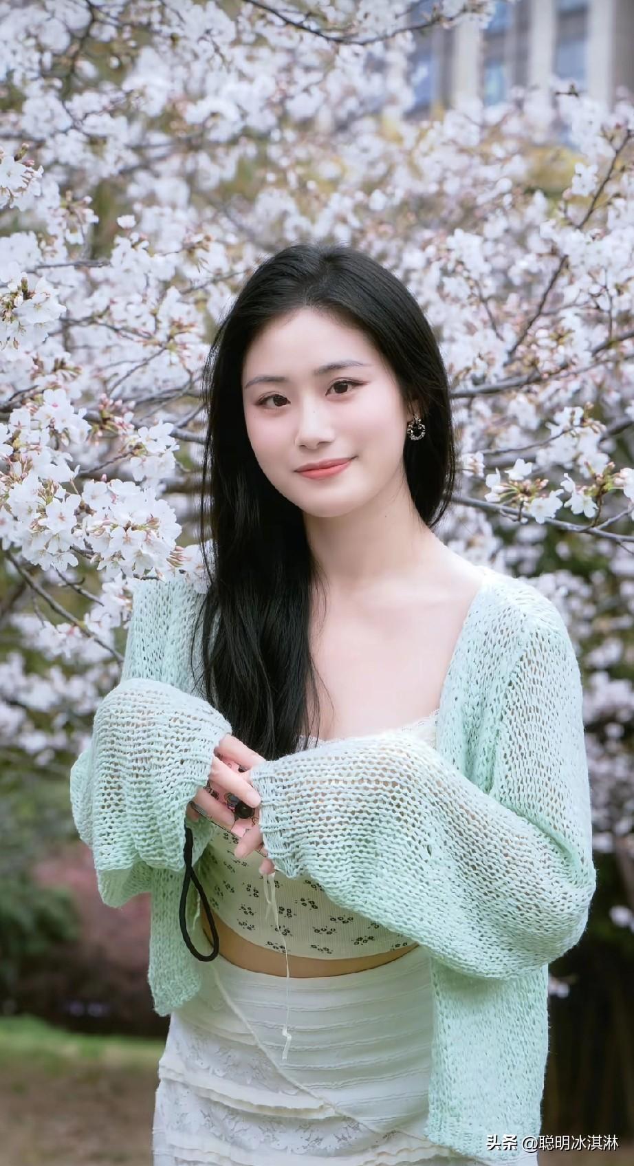 樱花树下,温柔少女,春日气息扑面而来