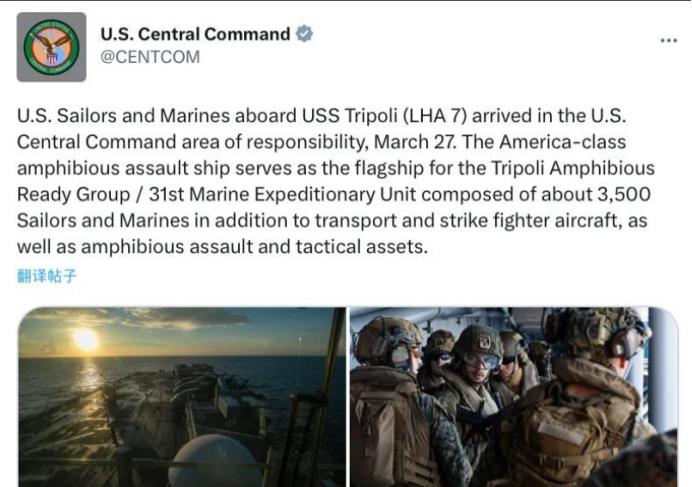 地面战将打响?第一批3500名美军特种兵已到伊朗周边,有四大看点 这是第一批可能参与地面战的特种兵,未来预计还会有数千名美军特种兵进入当地。 很多人看完这消息都慌了,纷纷猜测美军是不是真要对伊朗动手,地面战是不是真的要拉开序幕。 先跟大家说清楚,这3500名海军陆战队员可不是普通士兵,他们隶属于第31海军陆战队远征队,配备着F-35B隐身战机、MV-22鱼鹰运输机还有气垫登陆艇,具备独立的两栖突击和空中打击能力。 美军中央司令部的辖区范围很广,涵盖了中东、中亚等20多个国家,还有波斯湾这样的战略水道,而“的黎波里”号这次直接开到了波斯湾核心海域,距离伊朗非常近。 大家别混淆概念,美军说的“特种兵”其实就是这支精锐海军陆战队,他们可不是来摆样子的。美军近期一直在调整部署,后续还要增派至多1万名地面作战部队,涵盖步兵和装甲力量,规模虽然只有当年伊拉克战争的百分之一,却透着不一样的战略意图。 第一个关键看点,就是美军的真实目的根本不是全面占领伊朗。五角大楼近期曝光的作战方案显示,他们要搞的是“数周速决”的有限地面行动,放弃了成本高、风险大的全面入侵模式。 美军把核心目标锁定在了伊朗的哈尔克岛,这座岛屿承担着伊朗90%以上的原油出口任务,堪称伊朗经济的命脉。美军此前已经对这座岛屿的90多个军事目标实施了空袭,却特意保留了石油基础设施,明眼人都能看出来,他们就是想夺控这座岛,切断伊朗的经济来源。 第二个看点,伊朗早就做好了应对准备,并没有坐以待毙。伊朗方面已经察觉了美军的动向,在哈尔克岛增派了防空部队,还布设了防御地雷,专门应对美军可能的两栖登陆。 伊朗议长卡利巴夫近期也明确表态,美军表面上大谈谈判,背地里却在秘密策划地面进攻。伊朗武装部队已经做好了准备,就等着美军地面进攻,还要惩罚美军在地区的盟友。 第三个看点,美伊双方的谈判乱象,其实就是“缓兵之计”。3月下旬以来,美伊双方就传出了谈判的消息,却陷入了“罗生门”。美方说通过巴基斯坦向伊朗提出了15项停火条件,还说要停火一个月。 伊朗方面却直接否认了真正意义上的谈判,只承认双方有过“信息交换”,还明确表示绝不接受美方的不平等方案,伊朗提出的5项条件,核心就是要求美以停止侵略、赔偿损失,承认伊朗对霍尔木兹海峡的合法主权。 美方之所以放谈判的消息,其实是迫于国内反战情绪高涨、中期选举临近的压力,推迟打击计划只是为了安抚选民,并非真心想停火。伊朗的谨慎也能理解,毕竟此前已经被美方欺骗过两次,根本不敢相信美方的外交承诺。 第四个看点,这场对峙不只是美伊两国的事,已经牵扯到了整个中东地区,甚至影响全球。美军的部署让中东局势彻底动荡,以色列不顾美方暂缓打击的决定,频频空袭伊朗,就连伊朗的布什尔核电站都多次遭袭,核安全风险急剧升高。 也门胡塞武装也正式下场,连续发射导弹和无人机袭击以色列本土军事目标。科威特、卡塔尔、阿联酋等国也接连受到波及,要么机场遭袭,要么紧急拦截无人机,整个中东陷入了战火蔓延的困境。 更关键的是,霍尔木兹海峡是全球30%以上石油运输的必经之路,这里的局势动荡直接导致国际油价暴涨近40%,天然气、化肥等大宗商品价格也跟着飙升,全球粮食供应链都受到了影响。 回到大家最关心的问题,地面战真的会打响吗?目前来看还没有定论。美军虽然部署了精锐部队,却刻意控制兵力规模,不想重蹈伊拉克战争陷入长期泥潭的覆辙。 伊朗的强硬反击也让美军有所忌惮,加上美方国内的反战压力和全球战略资源收缩的现实,美军大概率不会轻易发动全面地面战。 但这并不意味着局势会缓和,美军的“经济绞杀”策略已经开始实施,后续还会有更多兵力部署到位。美伊双方的对峙还会持续,中东的动荡也很难在短期内结束,咱们只能持续关注局势的进一步发展。