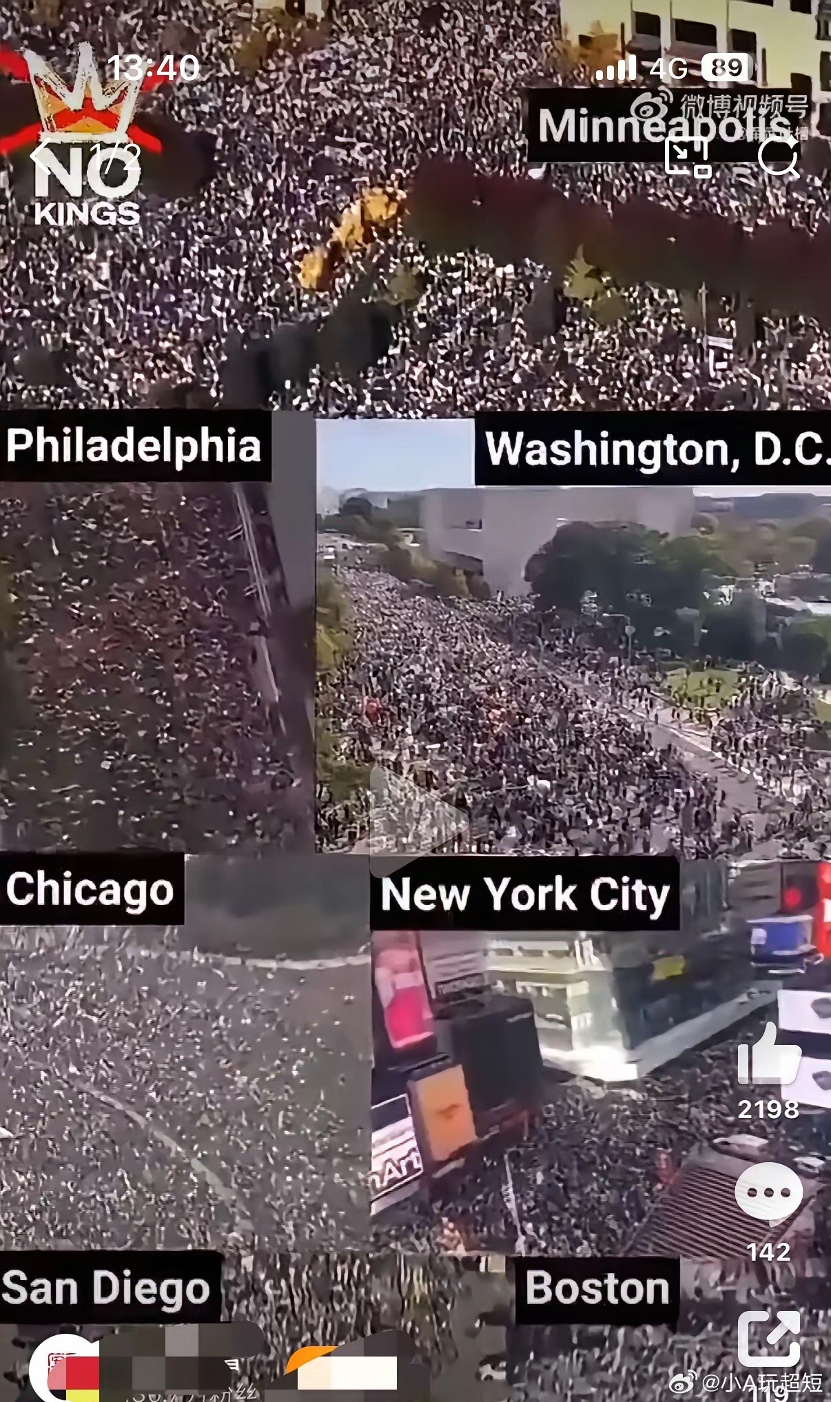 特朗普这个周末怕是睡不着了,——美国历史上头一遭,50个州、上百万人同时喊出“不要国王”!(No kings)不是什么零星抗议,而是从东海岸到西海岸,连共和党支持者也站进了队伍里。这说明反对他的人,早已不分党派,而是源于一种更底层的共识:这个国家,不能变成一个人的国家!事情的根源不难找:上台以来,特朗普绕开国会已经不是一回两回。行政令当法律用,“紧急状态”当通行证用——为了绕开反对声,连对外动武都能包装成“特别行动”。手段越用越顺手,规则也就越被不当回事!但民众不是那么好糊弄的。说得再好听,落到生活里,是油价涨了,物价高了,日子紧了。移民政策再强硬,落到社区里,是秩序乱了,不安感多了。这些才是老百姓真正在意的东西,也是他们愿意走上街头的理由!“不要国王”这四个字,喊的不是情绪,是判断!它意味着,一个人长期靠手段绕过程序,最终会只会让自己站到民意对面!中期选举不远了。这场席卷全美的集会能带来多大影响,现在还不好说!但有一点很清楚:当民众开始用“国王”来称呼一个民选总统的时候,说明信任已经绷到了极限!
