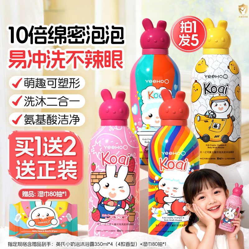 英氏儿童沐浴露洗发水二合一宝宝专用小奶泡