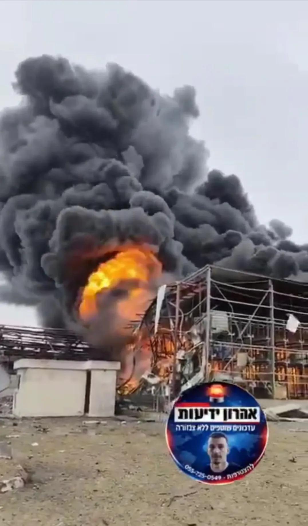 伊朗“真实承诺-4”行动第86轮打击行动发射的一枚弹道导弹击中了以色列贝尔谢巴工业区,爆炸引发了大火,并且产生了直冲云霄的黑烟。