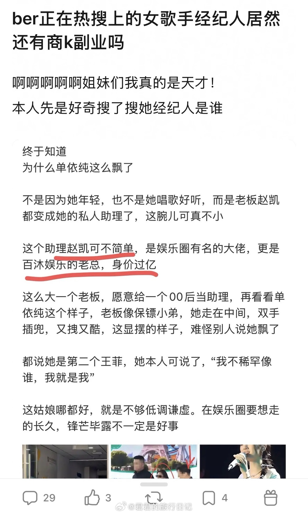 OMG,瓜又更新了。有网友扒出单依纯的经纪人的商业版图有涉及商K. 而且商K名字