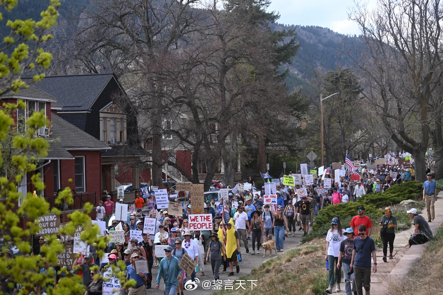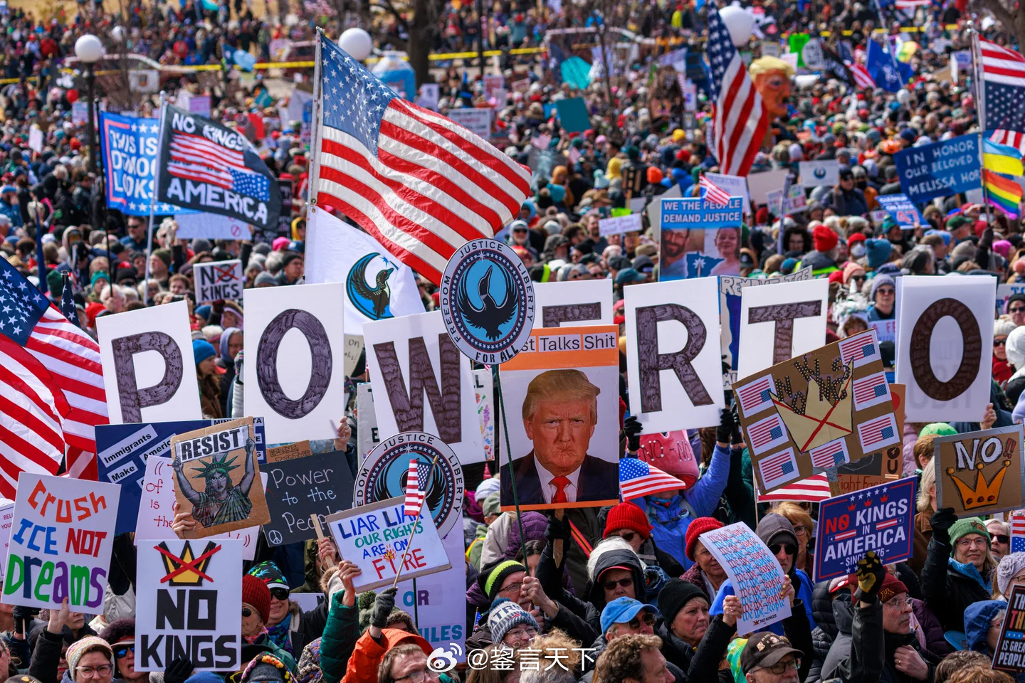 周六“美国没有国王”示威的照片。网图