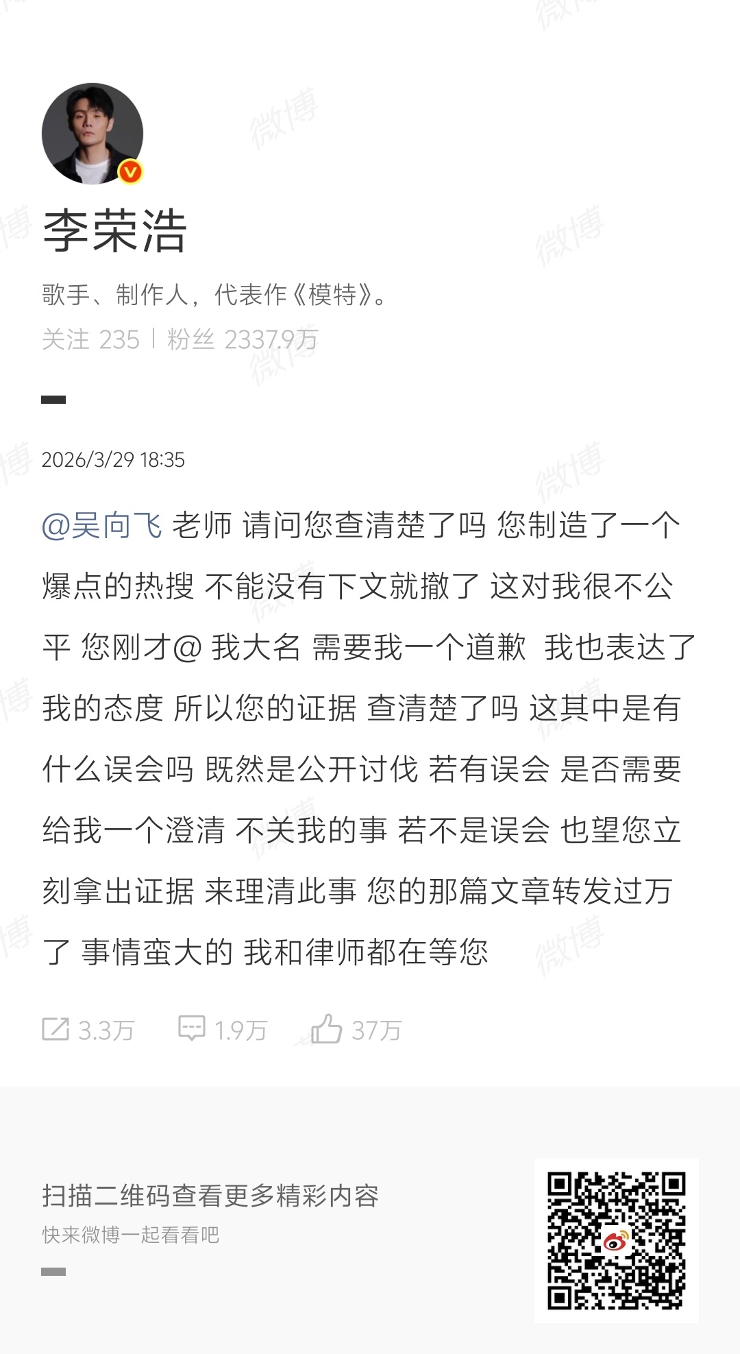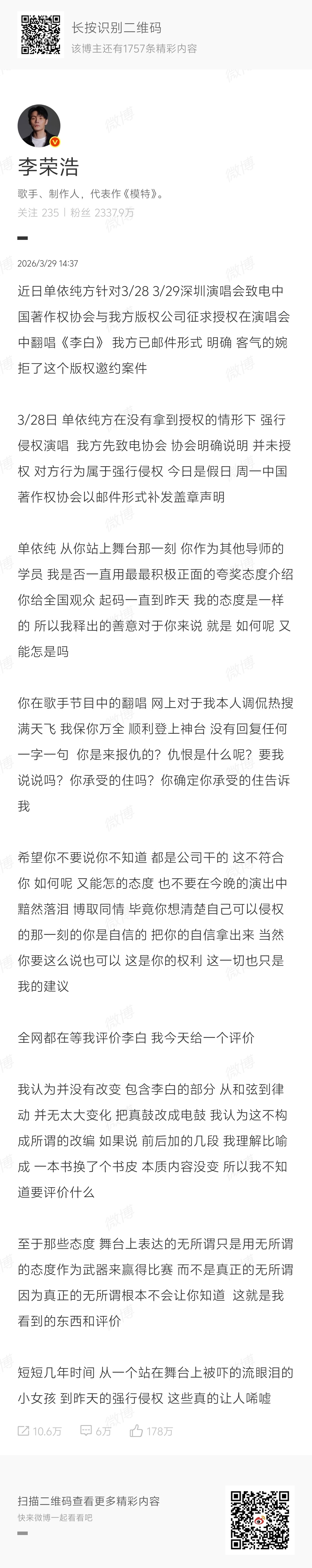 什么叫个人战 李荣浩给出了答案