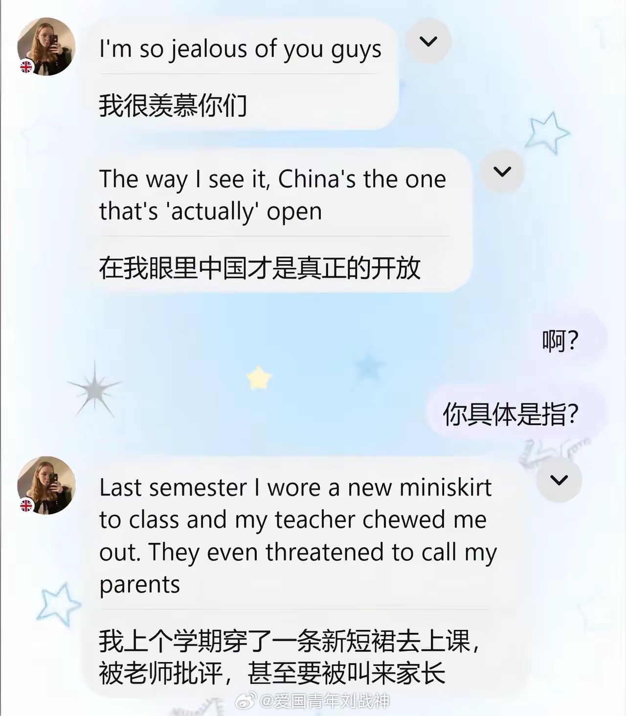 白女:中国才是真正的开放!