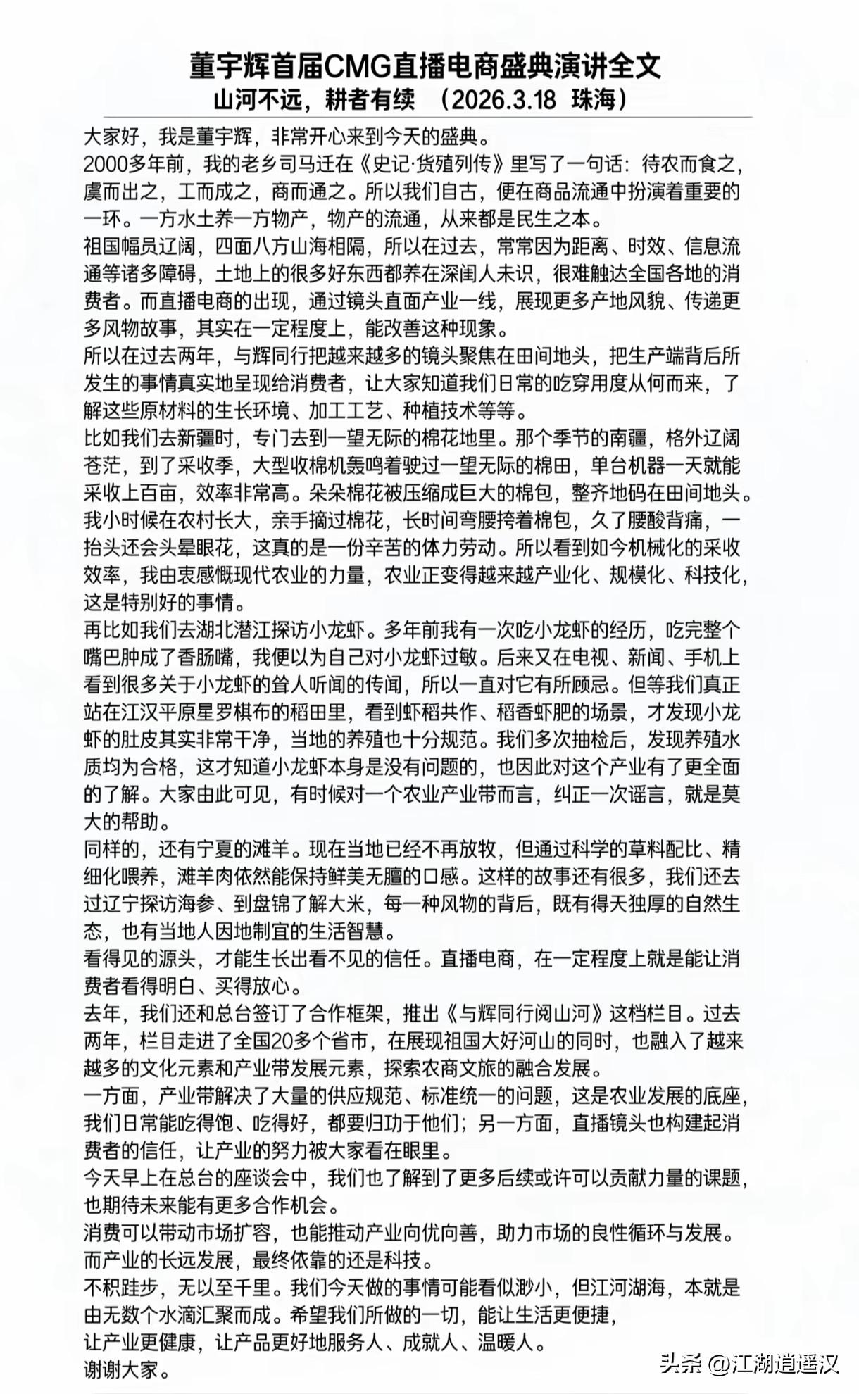 CMG直播电商盛典太给力!必须给央视点赞!与辉同行拿下年度影响力直播间第一,此前网传第三的说法不攻自破。这说明央视评选不只看流量,更看重行业价值与正向引导。董宇辉一直强调“商业最终是人心,品牌落脚是信任”,与辉同行靠诚信和品质赢得消费者,也为直播电商立了标杆。如今稳居行业榜首,实至名归,祝一路长虹!与辉同行 董宇辉