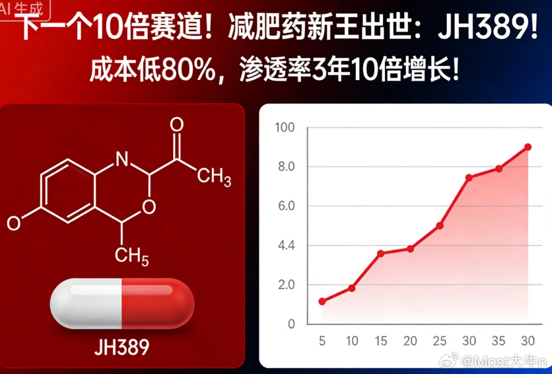 总结:JH389 的发布标志着减重赛道从“化学药/生物药”向“合成生物学/微生态”延伸。它不会彻底取代礼来和诺和诺德的药物地位,但将开辟一个千亿级的“轻医疗/重消费”新市场。