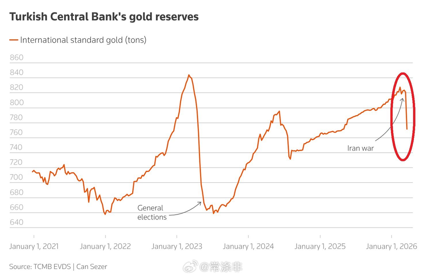土耳其正以前所未有的速度消耗其储备。老常政经黄金贵金属常涤非观点