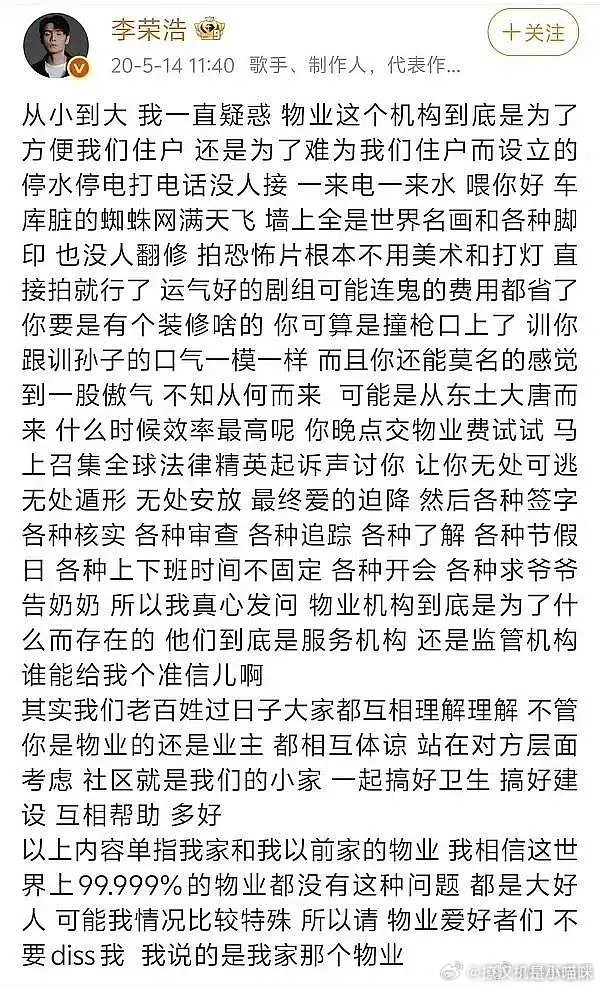 李荣浩骂物业 传世经典李荣浩:不要让好人受一点点委屈 也不要让坏人尝到一点点甜头嘴皮子功夫了得