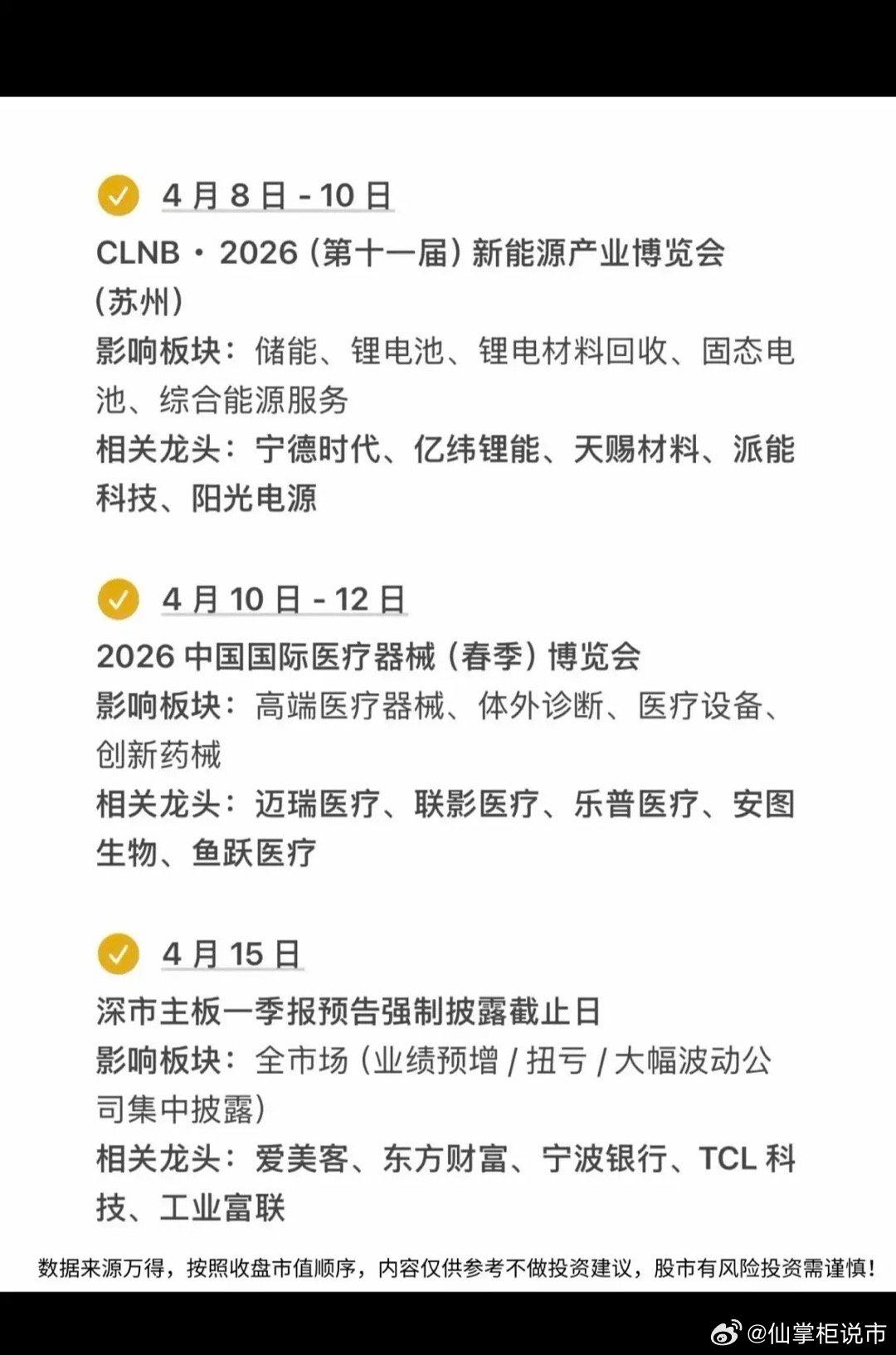 1.光伏退税2.非洲矿产资源新税率3.新能源产业博览会4.香港电子展5.人形机器人大会6.通信6G技术大会7.半导体生态大会8.年报,一季报披露期9.美联储议息