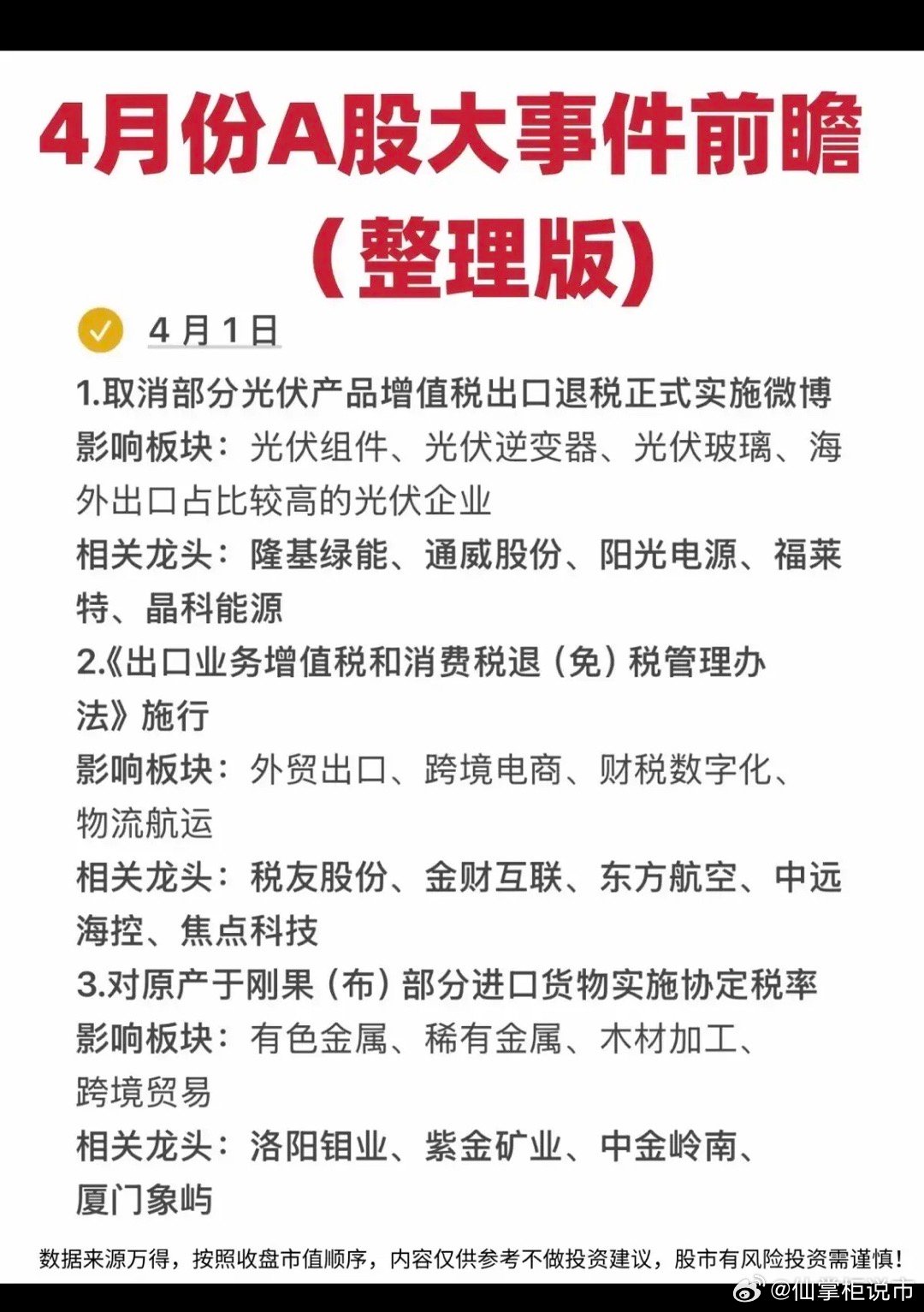 4月份:A股热点大事件,前瞻汇总!1.光伏退税2.非洲矿产资源新税率3.新能源产