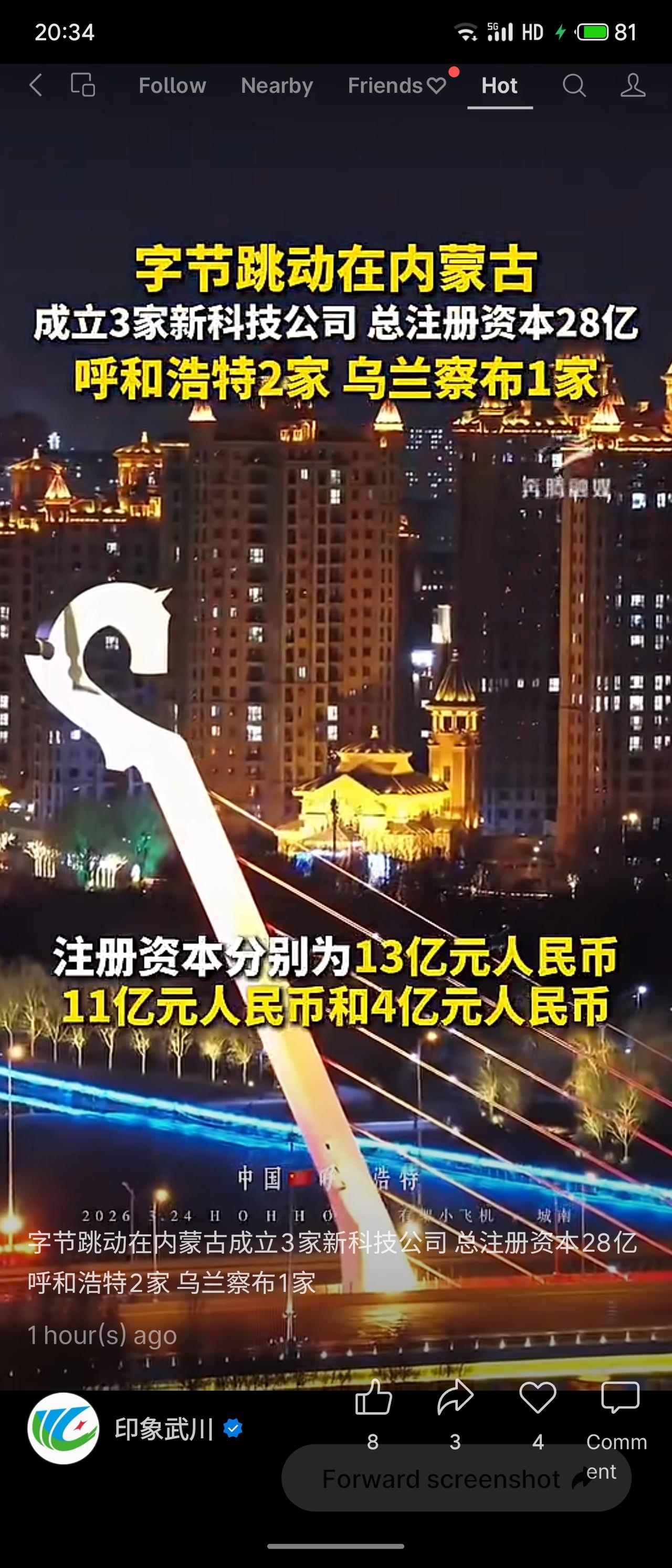 近日,字节跳动通过北京字跳网络技术有限公司,在内蒙古成立3家新科技公司,总注册资