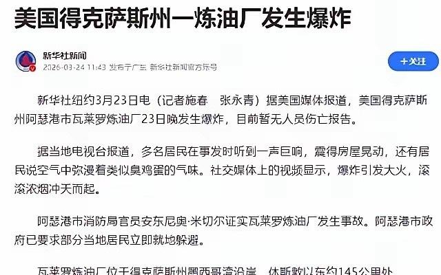 全美排名前10的炼油厂, 已经有4家发生了爆炸,这个损失可是难以估量的哦。