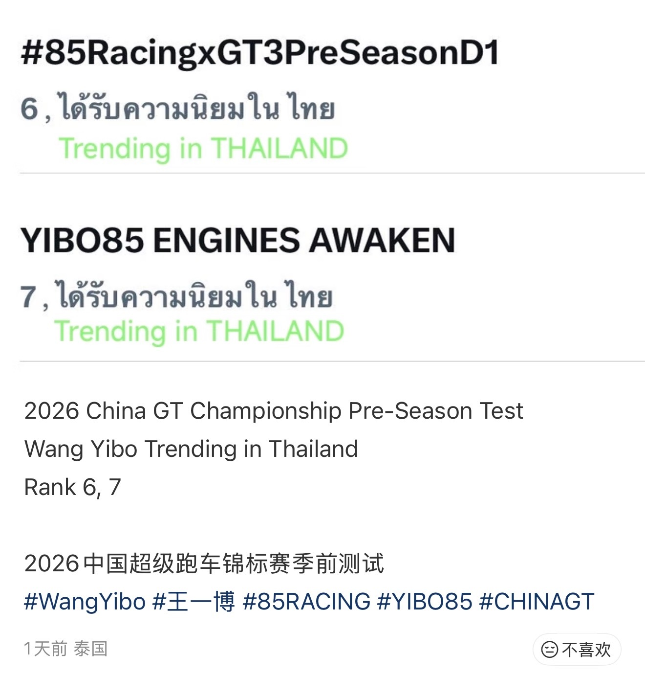 王一博王一博赛道试炼结束两天训练结束了依旧轻松登陆泰趋,泰红了