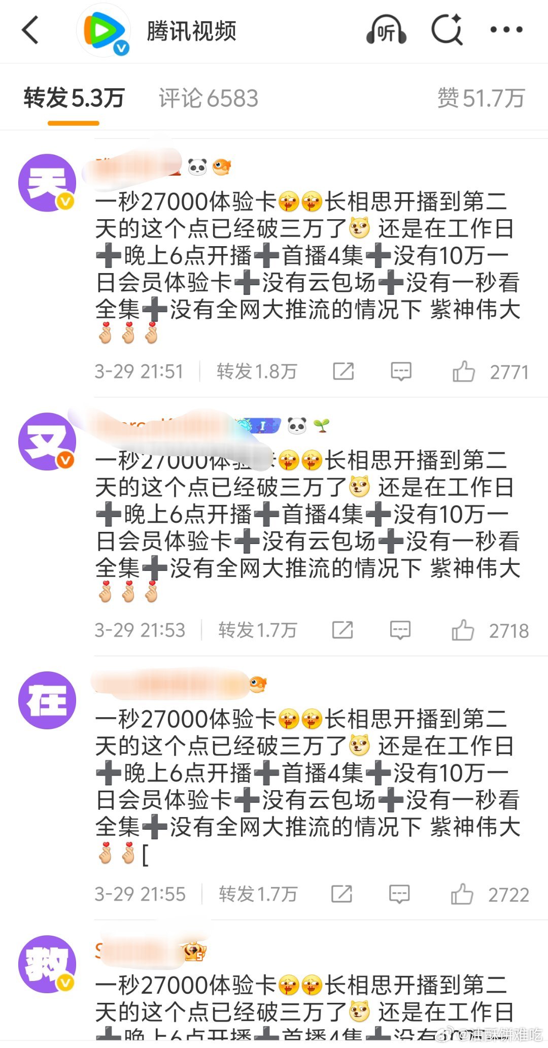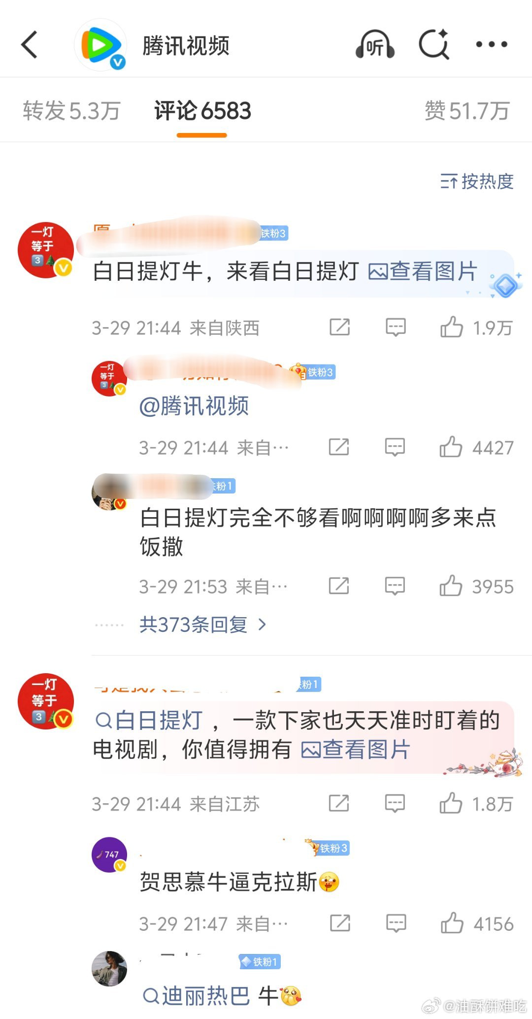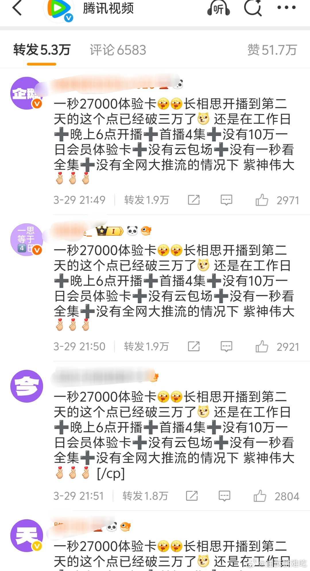 腾讯视频官博三月就没安生过,前有逐玉水漫金山被路人冲水晶,今有巴紫白日提灯270