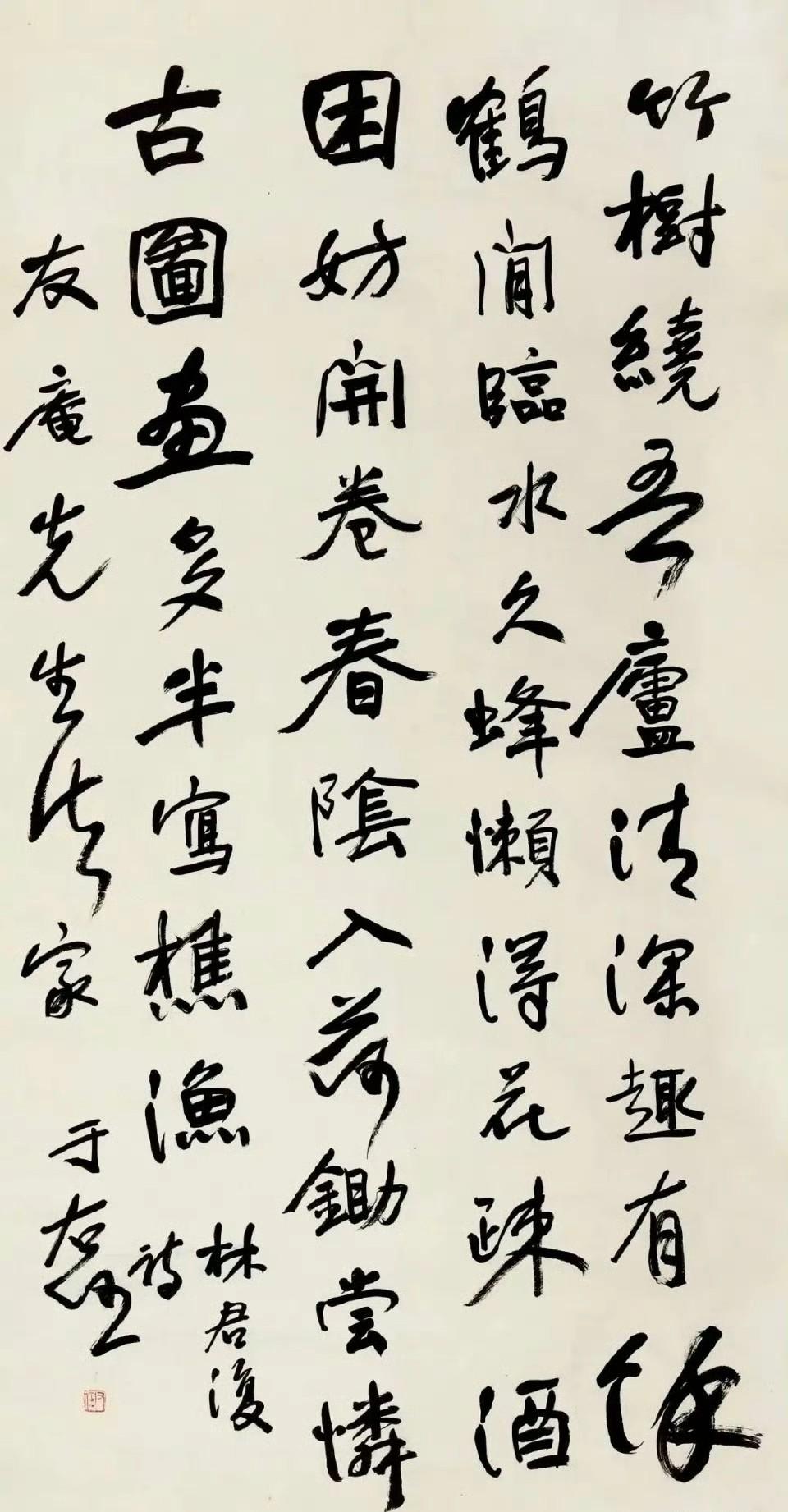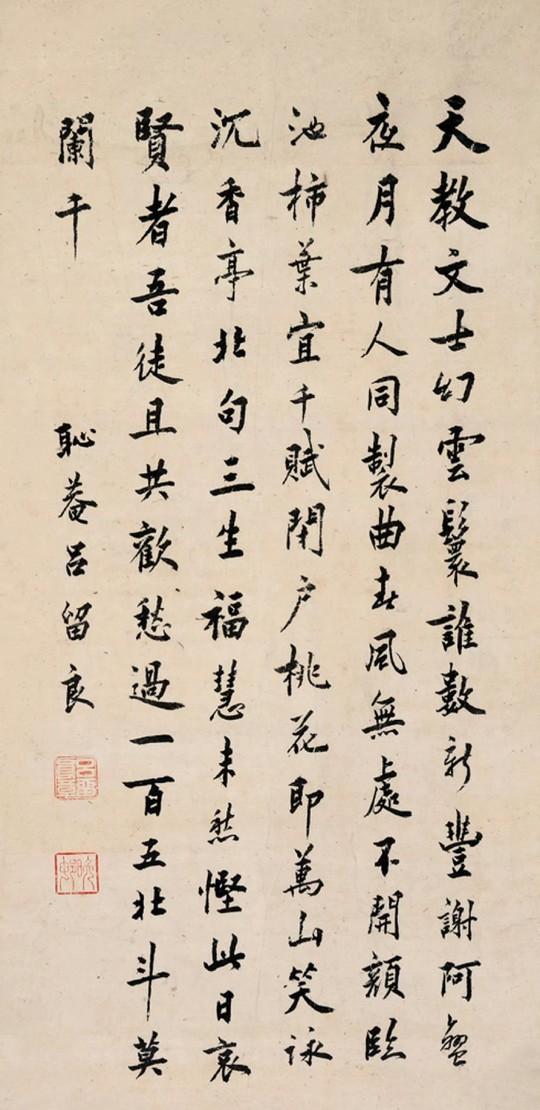 我别故人无十日,冲烟艇子又重来。 门前积雨生幽草,墙上春云覆绿苔。 仰之先生正,于右任。 ​​​ 新松恨不高千尺,恶竹应须斩万竿。 ​​​ 白 蕉 行书七言诗句。 目断青山白鸟明,姑苏城下有人耕。 越来溪水流遗恨,鸣咽声中似不平, 云林。 率真先生正之,于右任。 ​​​ 吕留良 楷书镜片。款识:耻庵吕留良。 环滁皆山也。其西南之诸峰, 林壑尤美,望之蔚然而深秀者, 琅琊也……太守谓谁,庐陵欧阳修也。 ​​​ 吕 宫 行书 醉翁亭记。 竹树绕吾庐,清深趣有余。 鹤闻临水久,蜂懒得花疏。 酒困妨开卷,春阴入荷锄。 尝怜古图画,多半写樵渔。 林君复诗。 友庵先生法家,于右任。 ​​​ 雪晴云散北风寒,楚水吴山道路难。 今日送君须尽醉,明朝相望路漫漫。 赵孟頫《雪晴云散帖》 ​​​ 峨眉山月半轮秋,影入平羌江水流。 夜发清溪向三峡,思君不见下渝州。 ​​​ 尉天池草书李白《峨眉山月歌》 北国风光……一代天骄,成吉思汗, 只识弯弓射大雕。俱往矣,数风流人物, 还看今朝。 ​​​ 沈尹默草书 毛泽东词。