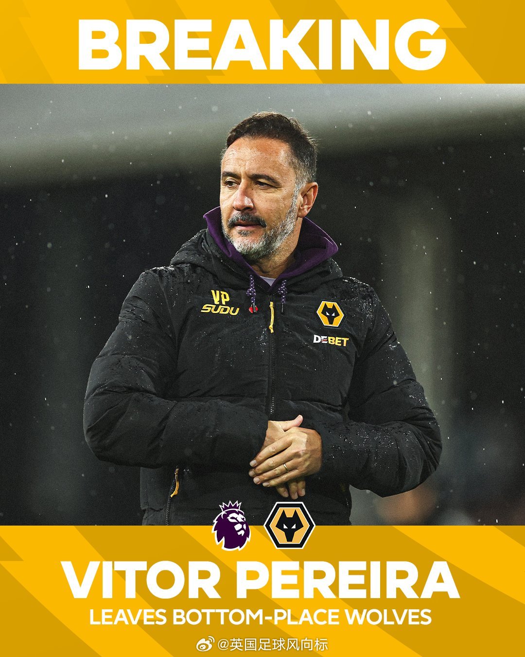 2025年11月02日,狼队(排名第20位),解雇维克托-佩雷拉,接任者为罗布-爱德华兹 。