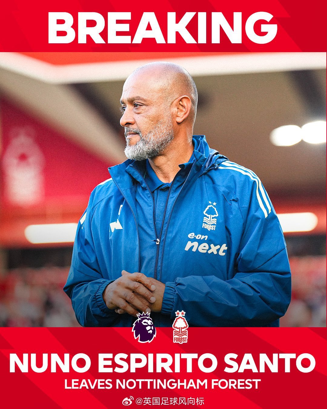 2025年09月09日,诺丁汉森林(排名第10位),解雇努诺桑托,接任者为波斯特科格鲁。