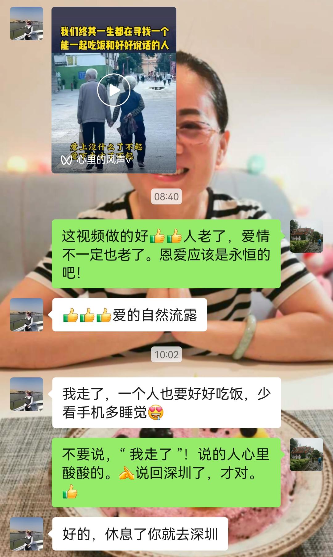 人老了,爱情未必老去。 如今在网络上,常看到年纪大了的友友们调侃:“同屋不同房,同房不同床,同床不同被,同背背靠背”,说这是当下老人生活的真实写照。 我却不这么认为。 昨天早上,老伴儿要回深圳带外孙,我则要去上班。到单位后,我给老婆发了条微信,跟她说:“记得把心带到深圳去”。 说实话,老婆如今心挂两头,孩子在深圳,她要去帮忙带外孙;而我还在广州上班,一个人生活工作难免孤单。老婆只能两地奔波,其实她也很辛苦。我每个月也会去一趟深圳,也就是说,我们一个月至少有两次见面的机会。虽说我们不像年轻人那样渴望天天见面,但还是会尽可能抽出时间,多在一起生活。 我们在一起时,会尽量找地方去走走或去旅游。我特别喜欢带老婆去旅游,和老婆一起走过了大半个中国。我在西安工作的两年,游遍了西北。陕西的地级市大多去旅游过;在宁波工作一年半,逛遍了整个华东;在浙江工作的一年半里,除了丽水,浙江其它地级市都去旅游过了。在宁波,只要有点名气的村,我们都会去看看。我还记得的,蒋介石的老家溪口和他夫人毛福梅的村,还有马头村,南凹长寿村,天下第一进士村… 直到现在,只要有时间,我们俩就爱出去玩。时间充裕,就周边自驾游。时间短,就在市区或市郊游。我来广州5年了,广东大部分地级市都留下了我们的足迹。几天前,我们还自驾游去汕尾市玩了两天。 人老了,有些功能会减退,但夫妻感情未必会减退。很多老两口依旧恩恩爱爱。和年轻时相比,只是爱的方式变了,这便是幸福的人生。网络上,时常能看到一些老人吐槽,说老两口没话说,各管各的。我觉得这并非理想状态,也不是老人所追求的。 人老了,同样有爱情。所谓爱情,因爱而生激情,有了激情会更爱。爱情需要培养,也需要经营。