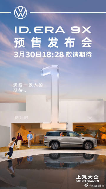 ID.ERA 9X预售发布会上汽大众ID. ERA 9X将于3月30日18:28开启预售,发布会将公布配置与价格。新车集结九大黑科技,以满级动力、智驾、智舱、设计,定义增程新旗舰,大空间满足家庭出行需求。大众9X九大黑科技 大众9X