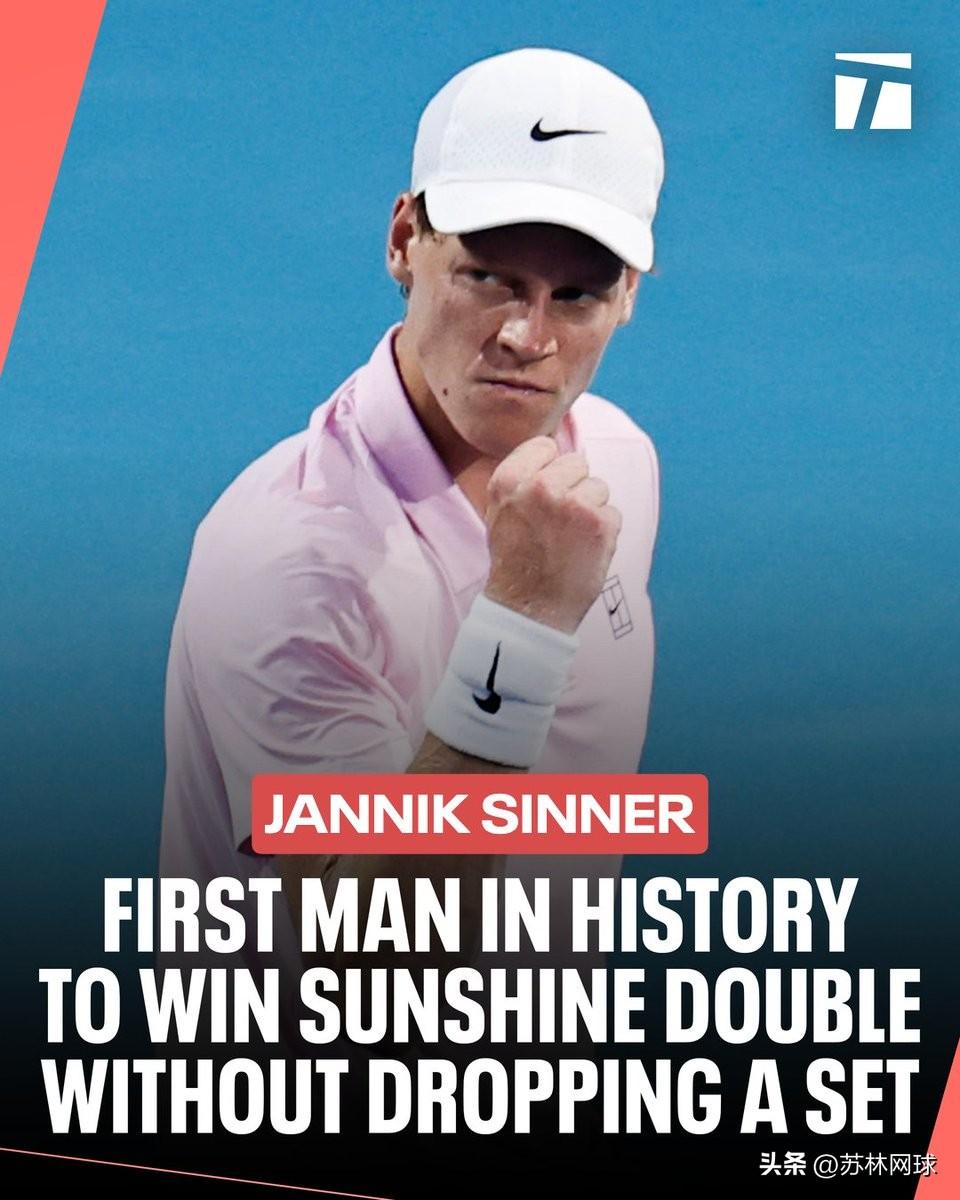 辛纳6-3/6-4莱赫卡 连续拿下34盘 连续三个大师赛夺冠 首次拿下阳光双冠