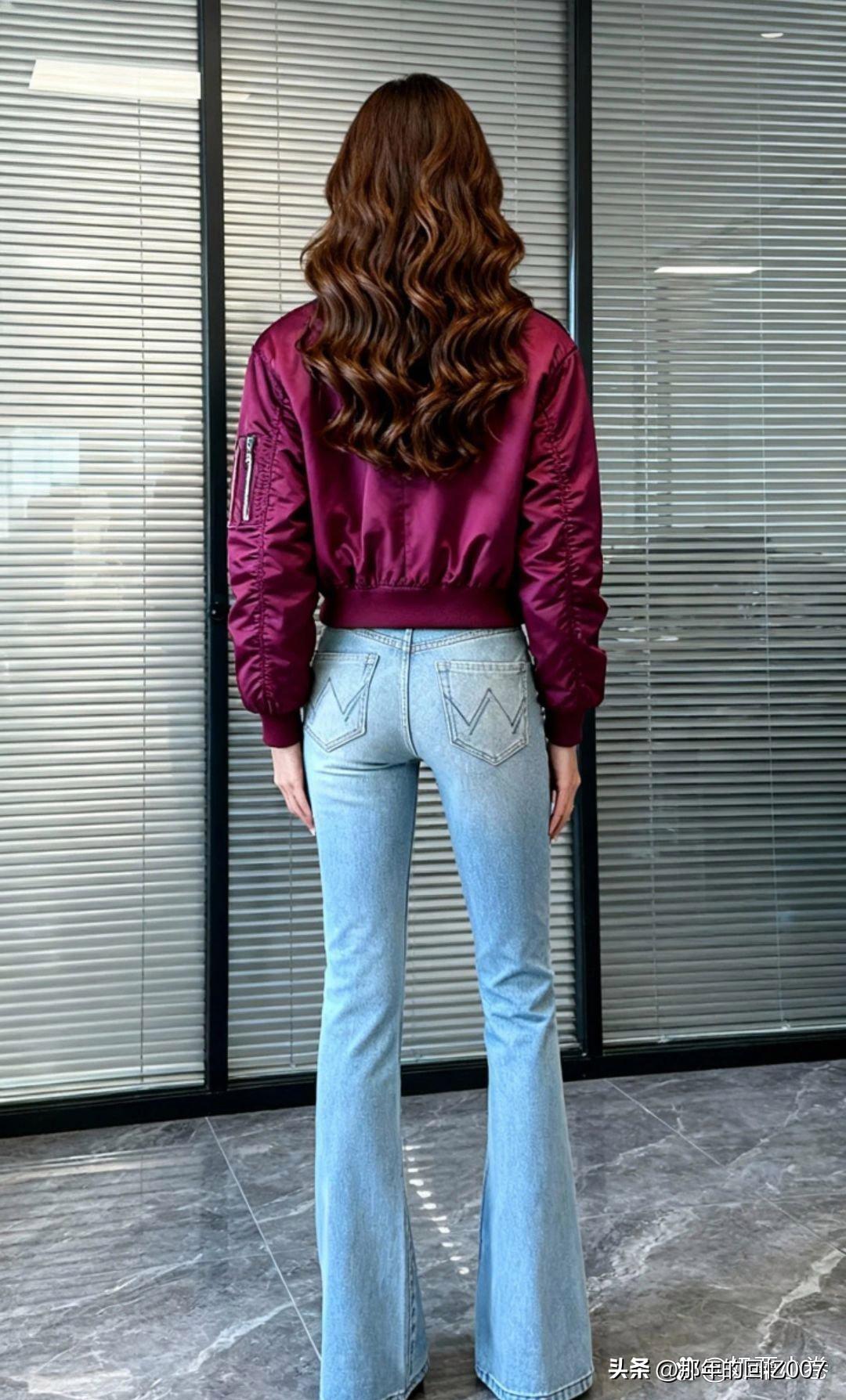 紫色夹克配高腰喇叭裤,这复古风穿搭太绝了!紫色夹克自带神秘浪漫气质,选饱和度适中的紫,日常又吸睛。像浅丁香紫温柔婉约,深葡萄紫高贵大气。 高腰喇叭裤更是复古神器,拉长腿部线条,显腿又细又长。裤型贴合臀部,裤腿呈喇叭状散开,走路带风。 搭配上,内搭白色紧身上衣,简约清爽。脚蹬一双厚底凉鞋或复古皮鞋,时尚感拉满。再挎个棕色复古单肩包,整体造型就更完整啦。穿上这套,轻松成为复古时尚弄潮儿!