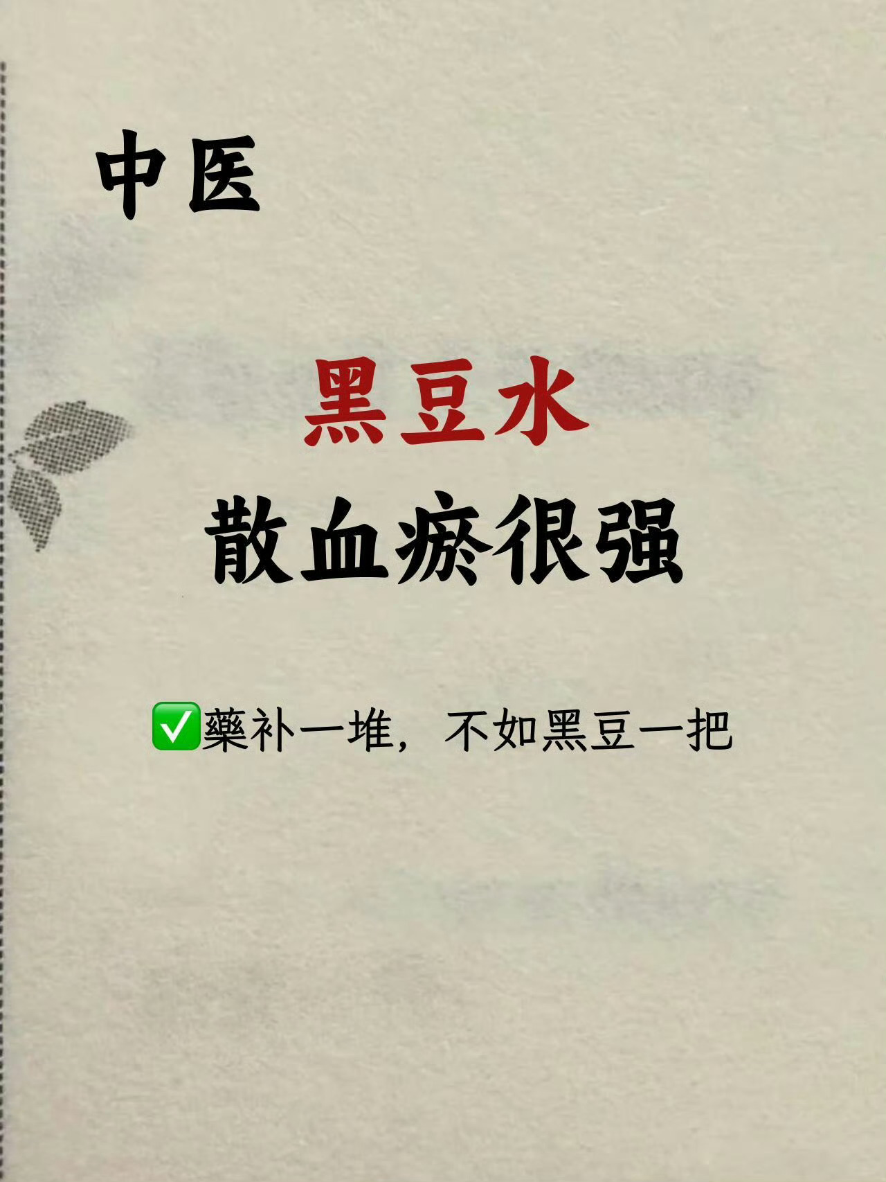 黑豆水,散血瘀王炸🔥,女生多喝❗️《神农本草经》记载:“生黑豆,涂痈肿,煮汁饮