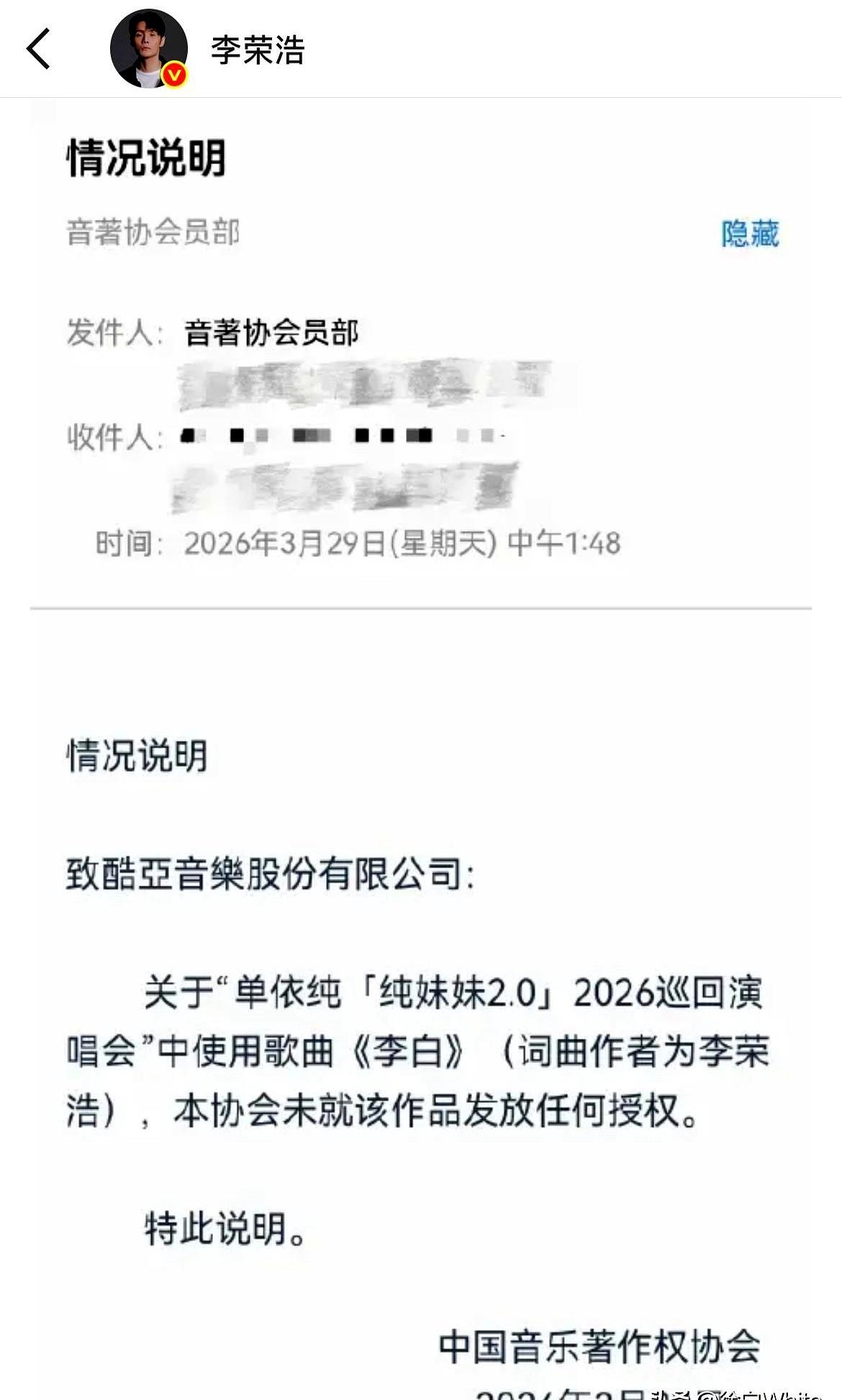 没想到吧,单依纯道歉也没用,李荣浩这次火气更大了! 他直接发文质问:没我授权,你用什么立场唱我的歌? 说白了,单依纯团队这操作就像你邻居没打招呼就拿你冰箱里的菜做饭,还说是家里人让拿的,能不气吗? 本来好好商量版权费就行,结果闹到要赔侵权费,这歌估计也悬了。 说实话,单依纯除了那首歌,还有啥让大家记得住的? 咱就说,这事儿闹成这样,是不是团队一开始就没把规矩当回事? 大家觉得,这事儿最后会怎么收场?