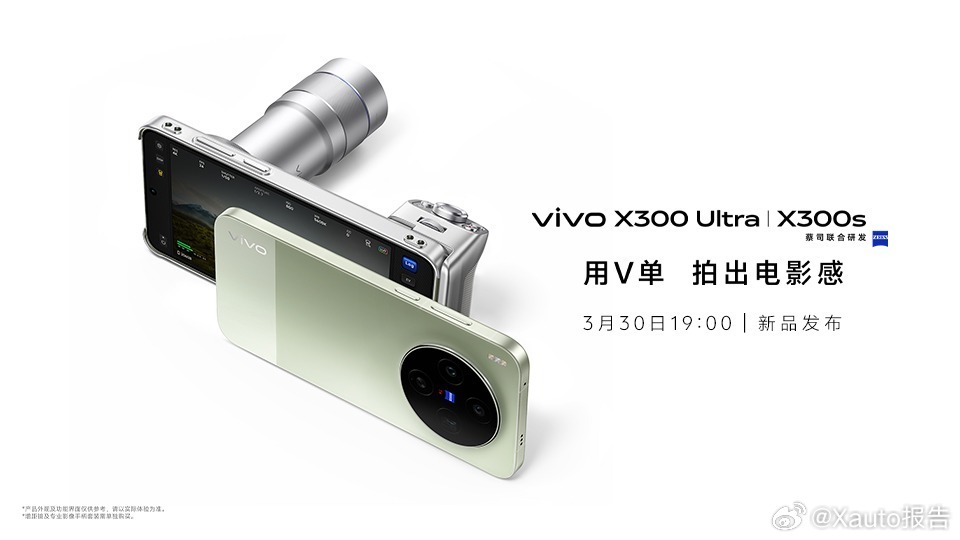 vivo X300 Ultra专业V单vivo X系列春季新品发布会将于3月30日19:00举办,将推出X300 Ultra与X300s两款机型。X300 Ultra搭载3+2蔡司大师镜头群,支持高规格全焦段视频拍摄;X300s配备6.78英寸144Hz高刷屏,性能全面升级。vivo X300s超能小V单vivo