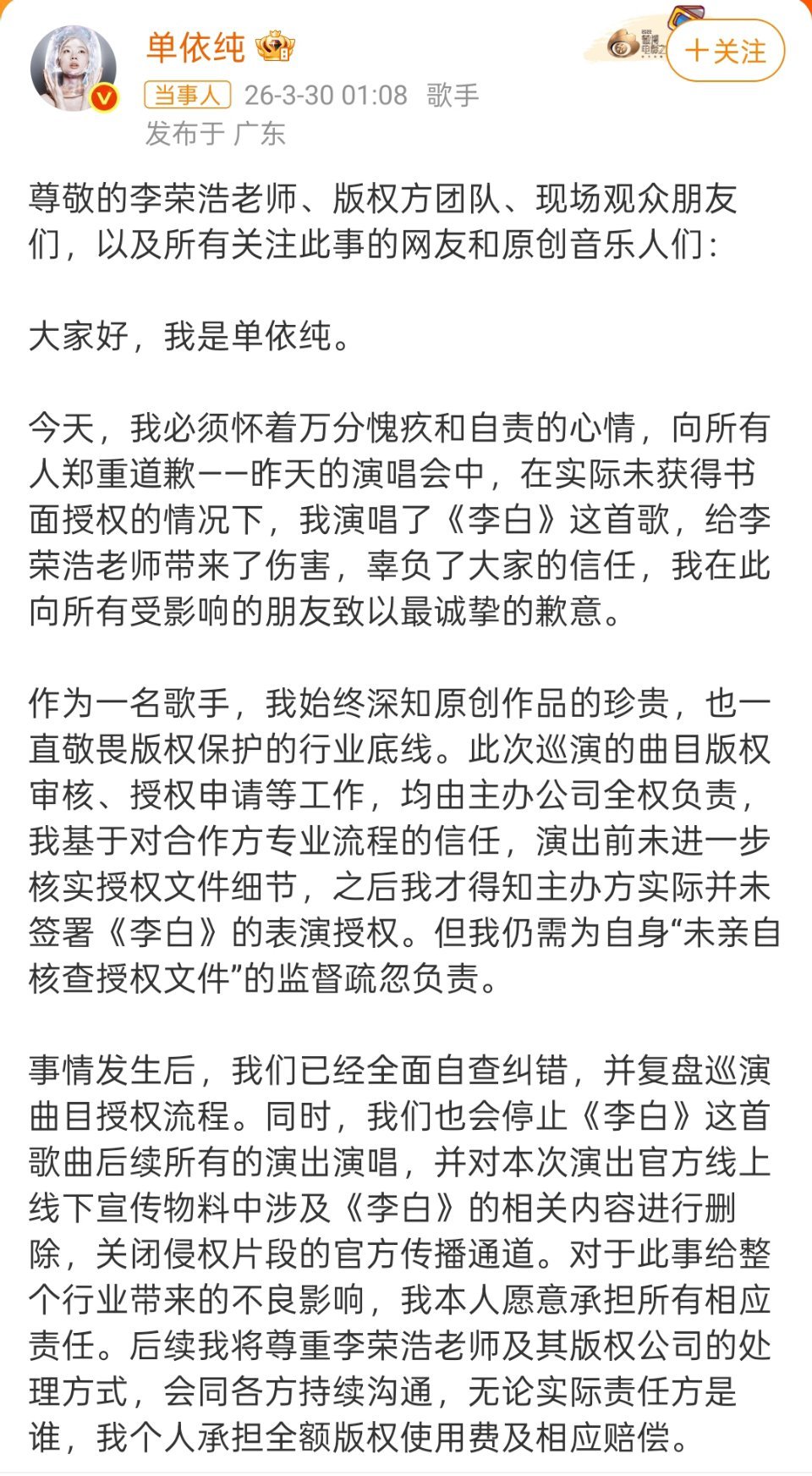 李荣浩说不需要赔偿李荣浩怎么这么体面啊我的天 谁还记得好声音时候,浩哥是导师,评价单依纯....我觉得已经不是侵权的问题,而是明知故犯 欺负浩哥老实人....