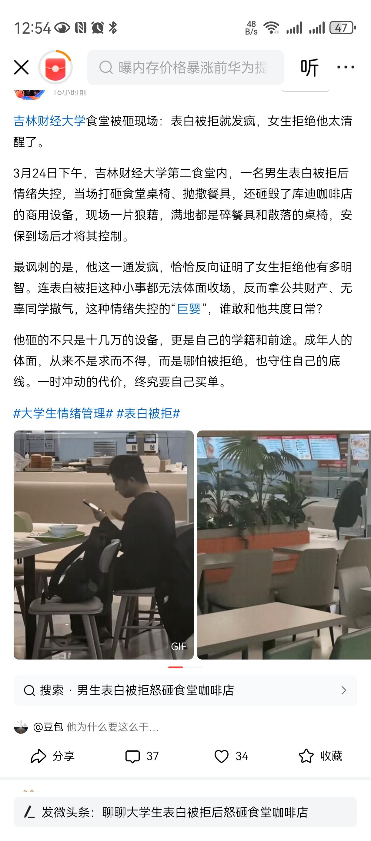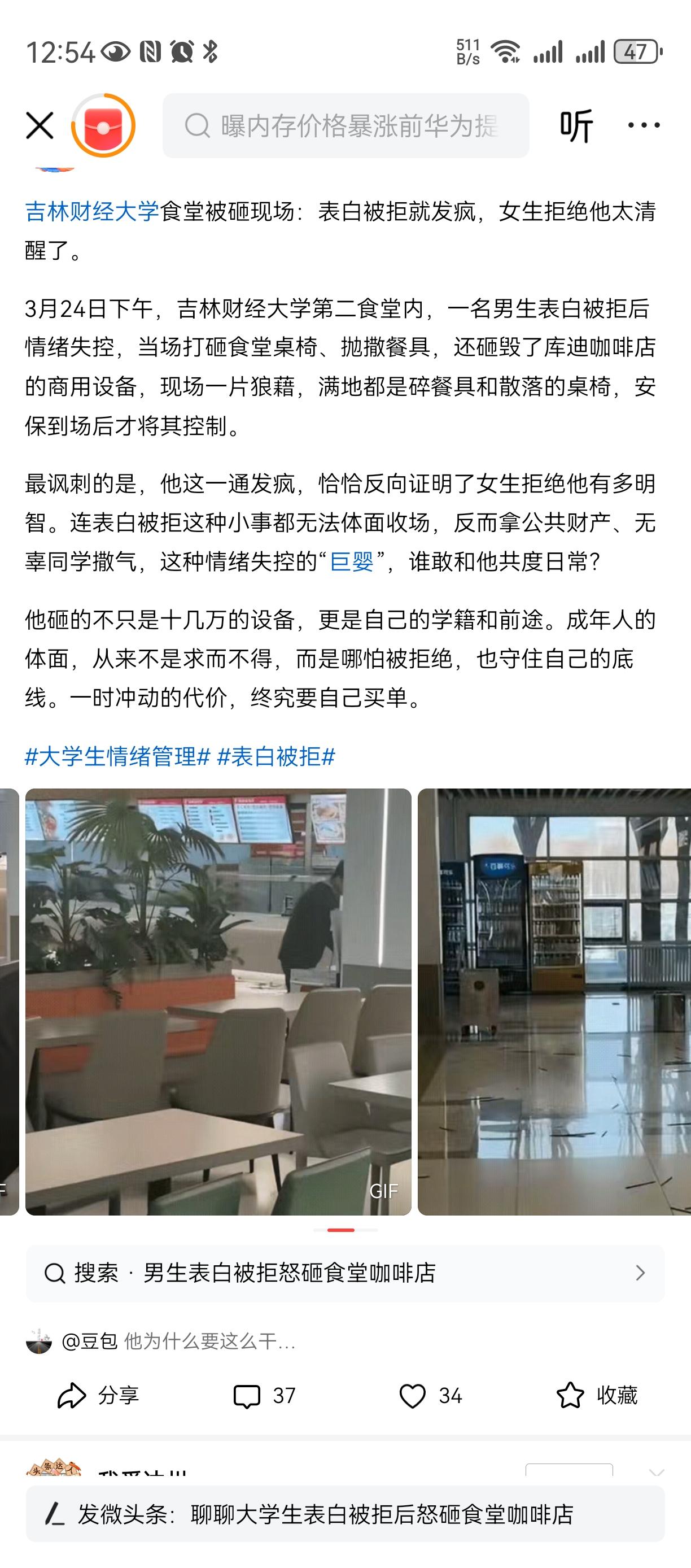 情绪稳定的重要性 情绪不稳定, 不仅不能解决问题, 还会产生大问题, 你看这个天之骄子大学生, 就因为小姑娘拒绝了他, 他直接砸砸砸, 直接损失10+W, 不知道后续警察的力度了, 他父母已经赔了钱, 如果如邢这个大学不知道还读不得的了!情绪稳定的定义 这个姑娘真的好眼光, 不拒绝命都可能没了。。。