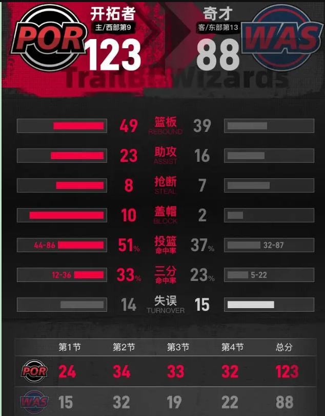 凌晨四点的摩达中心,灯火通明。你以为重建球队就该躺平摆烂?开拓者偏不。这群平均年龄23岁的小年轻,用一场123比88的屠戮告诉奇才:天赋可以慢慢兑现,但血性必须当场到账。 斯科特·亨德森才22岁,可那球商老得像在联盟打了十年。21分7助攻,零失误——这哪是毛头小子,分明是波特兰的"小将军"。图马尼·卡马拉更狠,23分7篮板外加三抢断,三分线外手起刀落,颗颗致命,活脱脱一个"3D天花板"。德尼·阿夫迪亚20+7+5填满数据栏,攻防一体,这才是现代锋线该有的样子。 要说最提气的,还得是杨瀚森那6分4板。末节登场,一记快攻暴扣砸得篮筐直晃,末尾跟里斯抱摔倒地双双吃T——这技术犯规吃的,分明是新人的投名状:老子不怕事儿。相比之下,奇才那群高顺位新秀在打什么?卡林顿11分,武克切维奇10分,数据像样,场面难堪。进攻端"谁拿球谁干",防守时眼神交流,第三节单节19分直接断电,这是打球还是打卡下班? 说到底,奇才输的不是35分,是精气神。开拓者临时主帅Splitter(斯普利特)把欧洲篮球的团队理念灌进这帮年轻人骨头里,12人上场11人得分,这才是篮球。重建不是遮羞布,输球文化才是最大的毒瘤。当杨瀚森在垃圾时间还在拼命护框时,奇才替补席已经有人在拆护具了。 看见了吗?赢球也是一种天赋,而且是最难练的那种。开拓者不是在重建,是在铸造。而这堂课的学费,华盛顿得交好几年。