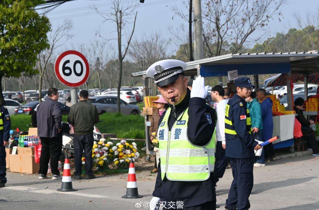 【清明祭扫踏青高峰来袭 武汉蔡甸交警用坚守绘就平安底色】武汉交警微视角 (通讯员:周鸿晨 李璐)清明将至,祭扫与踏青人流交织,武汉市蔡甸区各陵园、景区周边道路迎来持续超饱和运行压力。面对汹涌车流与如织人潮,武汉市公安局蔡甸区分局交通管理大队全警动员、科学施策,用一声声哨响、一次次挥臂、一步步搀扶,在川流不息的路口筑起平安防线,为市民铺就一条安全、畅通、温暖的清明出行路。 扶一程暖心路,护一份思念情 在祭扫出行的高峰时段,帮助行动不便的市民安全通行,是蔡甸交警守护思念的暖心之举。清明前一周,独山陵园迎来祭扫高峰,车流密集。一中队民警刘劲松在路口排堵时,发现头发花白的张奶奶正吃力地搀扶腿脚不便的老伴下车,身后车辆因此排起小长龙。他立即上前协调后方车辆避让,稳稳搀扶老人安全下车,并迅速联动陵园管理处协调摆渡车对接。短短几百米的搀扶,化解了老人的出行难题,让这条追思之路充满温情。 两天十万人流,玉笋山下 “守门人” 清明前的周末,玉笋山陵园迎来祭扫超级高峰,两天内涌入 2 万台车、10 万市民。四中队中队长李武作开启 “超长待机” 模式,立足车流潮汐特征,实行“远端分流、中端导流、近端循环”的排堵思路。他手持喇叭动态切换车道、打通微循环,采取“定点劝离 + 警车巡控”整治占道停车,即便嗓音沙哑,依旧精准指挥,牢牢守住陵园周边“生命通道”。 哨声嘹亮指方向,手哨一体保通畅 同样奋战在玉笋山陵园周边,四中队辅警叶天松以“手哨一体”的硬核作风成为排堵尖刀。车流中,他哨声嘹亮、手势有力,长哨截流、短哨放行、急哨清障,快速化解多处拥堵节点。他主动扎根最堵路口,不间断引导车辆交替通行、人车分离,即便嗓子嘶哑、手臂酸痛,依旧用坚守换来了车流有序、行人平安。 值守“人生终点站”的马路哨兵 千子星空陵园外,祭扫大军蜂拥而至,交通压力陡增。五中队民警吴冕准时到岗,他既是周边道路的“活地图”,也是破解拥堵的“解铃人”。面对密集车流,他高声引导车辆即停即走,遇到行动不便的老人便主动上前搀扶,用沙哑的嗓音和标准的手势,为往来思念护航,让清明出行“愁堵”变“舒通”。 景区门前“活路标”,花博汇里护春游 本周末,武汉花博汇景区迎来春游高峰,大车流短时集中。七中队民警刘国伟采取“远端提示、近端疏导、即停即走”的管控思路,以标准手势与响亮哨声引导车辆有序通行。针对游客上下车、车辆掉头扎堆等问题,他通过分段放行、人工干预信号快速疏堵,从清晨到日落,坚守岗位确保景区周边“拥而不堵、行停有序”。 从陵园到景区,从黎明到日暮,武汉蔡甸交警以执着坚守、暖心服务,在清明出行保障一线践行使命,用责任与担当绘就了城市最美的平安底色。