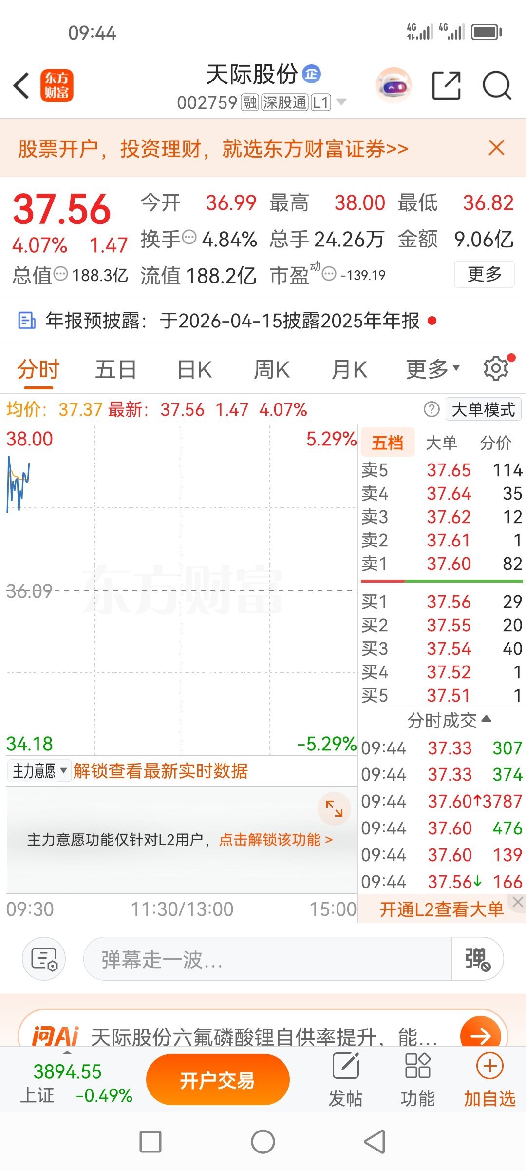 27日盘前分享的天际股份002759,今天继续上涨,继续盈利吃肉,炒股何以解忧?