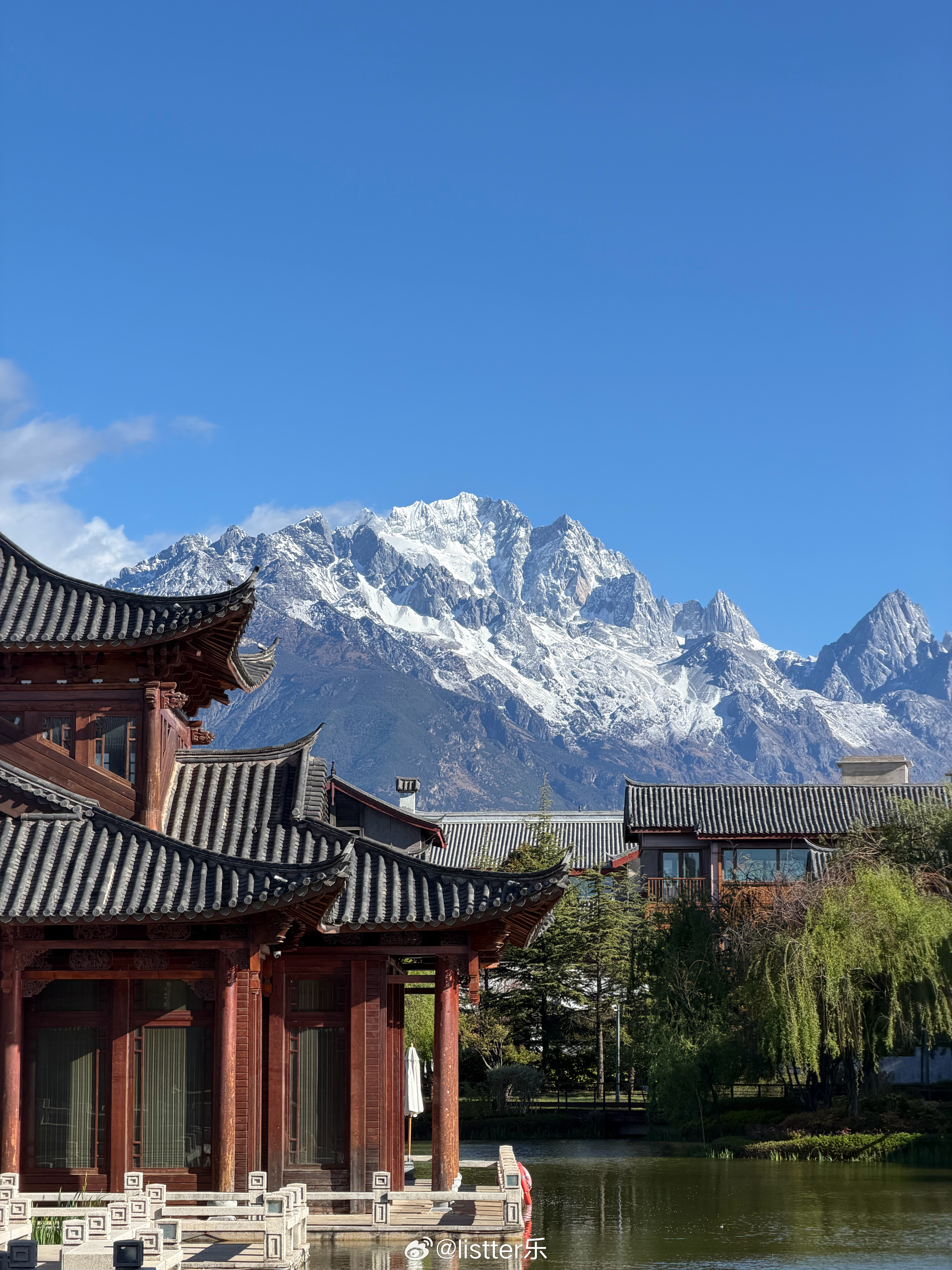 太漂亮了!酒店能直接看到玉龙雪山,最出名的日照金山看到啦!今天丽江天气真好,大晴