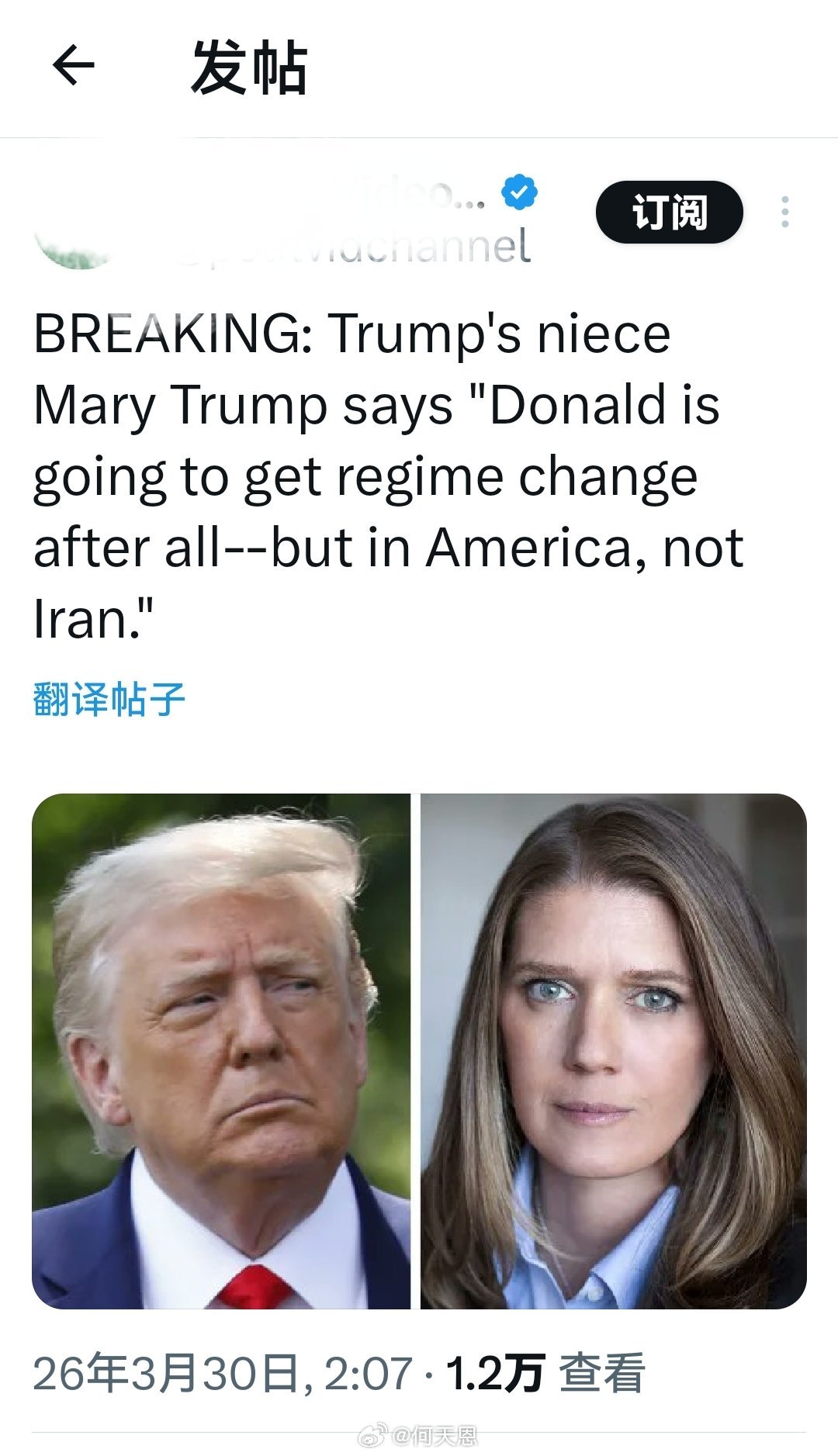 特朗普的侄女玛丽·特朗普表示: