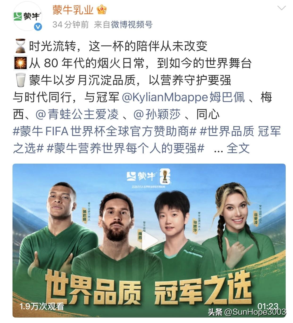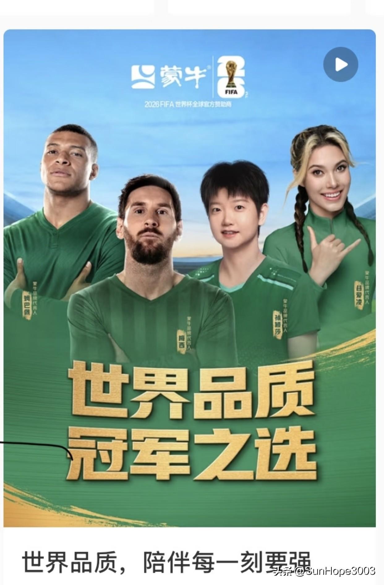 澳门世界杯即将开赛,红旗和蒙牛刚刚都发了孙颖莎, 与热爱同行,与冠军同心,所向披靡。 红旗也终于有自己的照片了,不用到处借了, 白衣服的莎莎,好漂亮。 前路皆坦途,所向披靡。 蒙牛的合照,妥妥的c位,冠军之选, 四位代言人都超级厉害, 任何一位都必须要竖大拇指,每一位都是该项目的顶级。 澳门世界杯今天要开赛了, 莎莎一切顺利,一场一场来,加油莎莎。