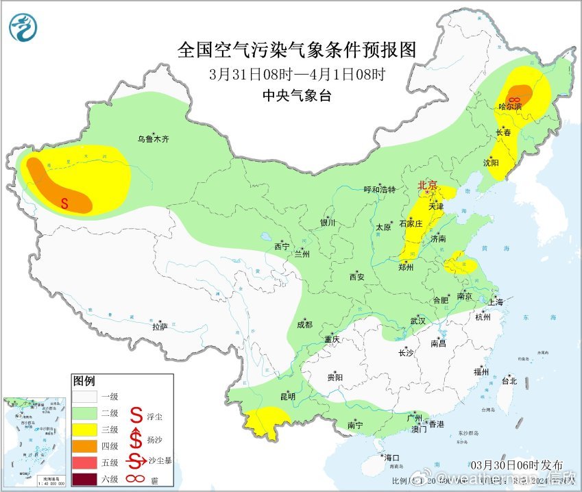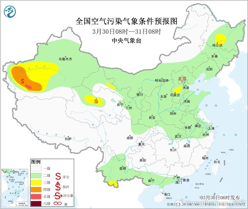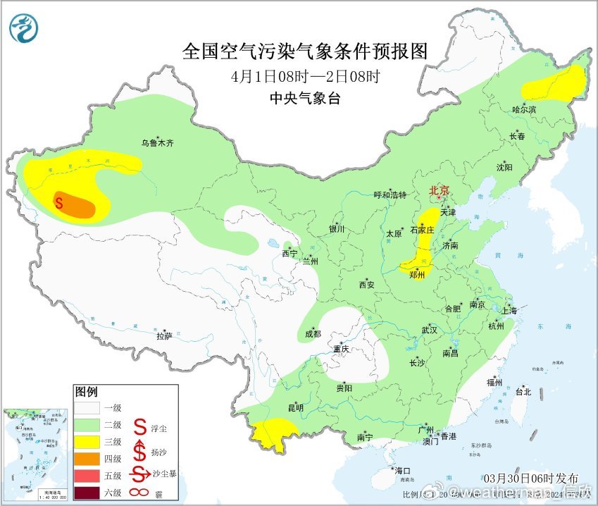 另外从目前形势看,4月2-3日可能有高空槽和地面气旋发展东移,形成大风,并扫过沙源地。4月2日至3日,西北地区大部、华北等地自西向东有扬沙或浮尘天气,其中新疆东部、内蒙古西部、甘肃西部、宁夏等地的部分地区有沙尘暴,局地有强沙尘暴。