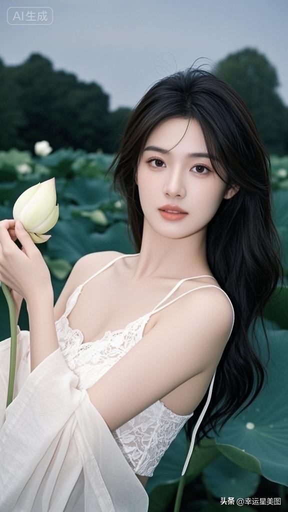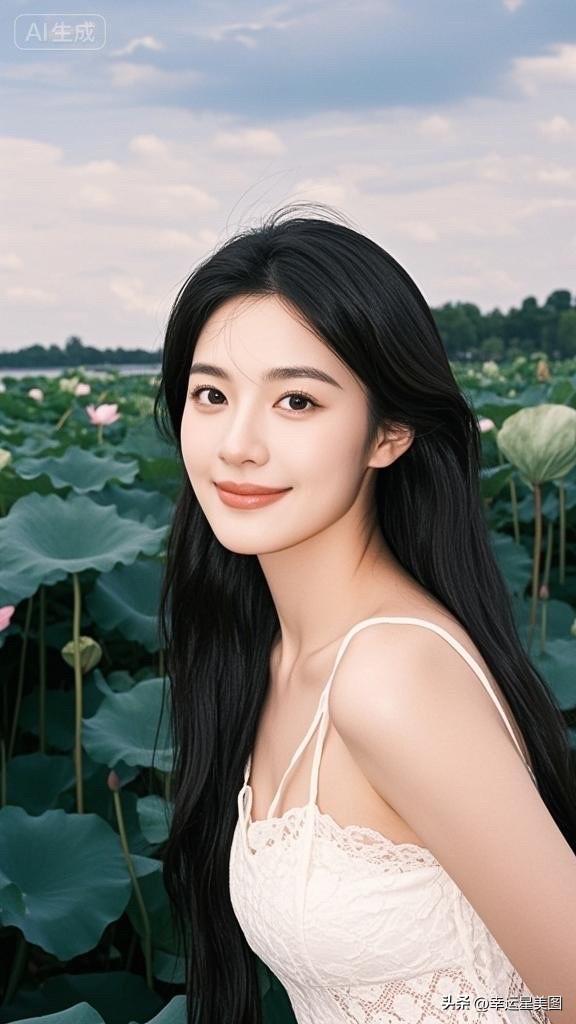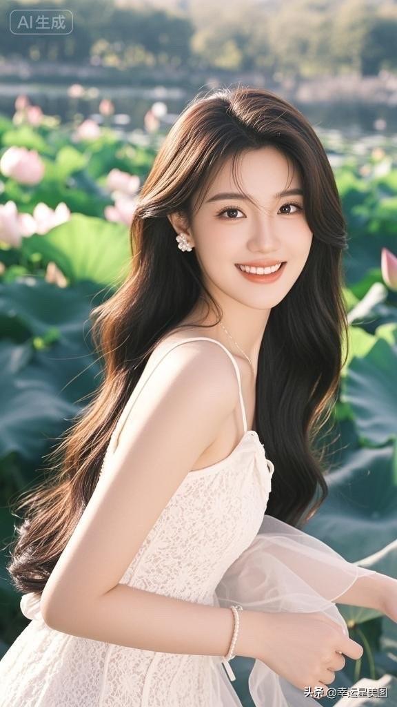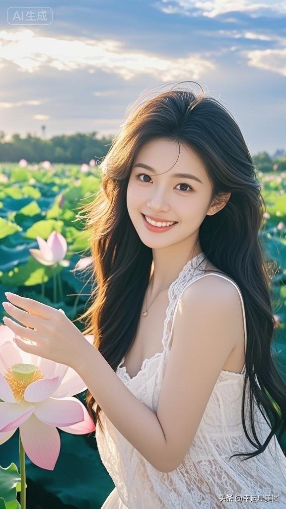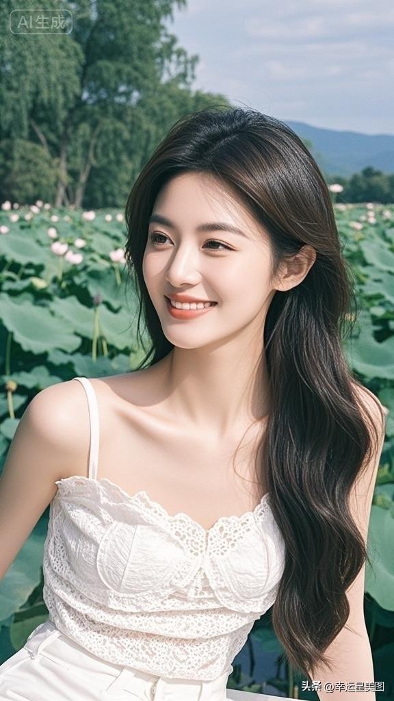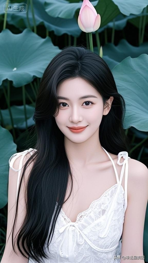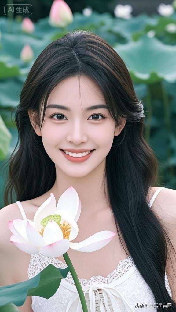夏日荷塘少女,清新自然,微笑如花绽放!🌸🌿