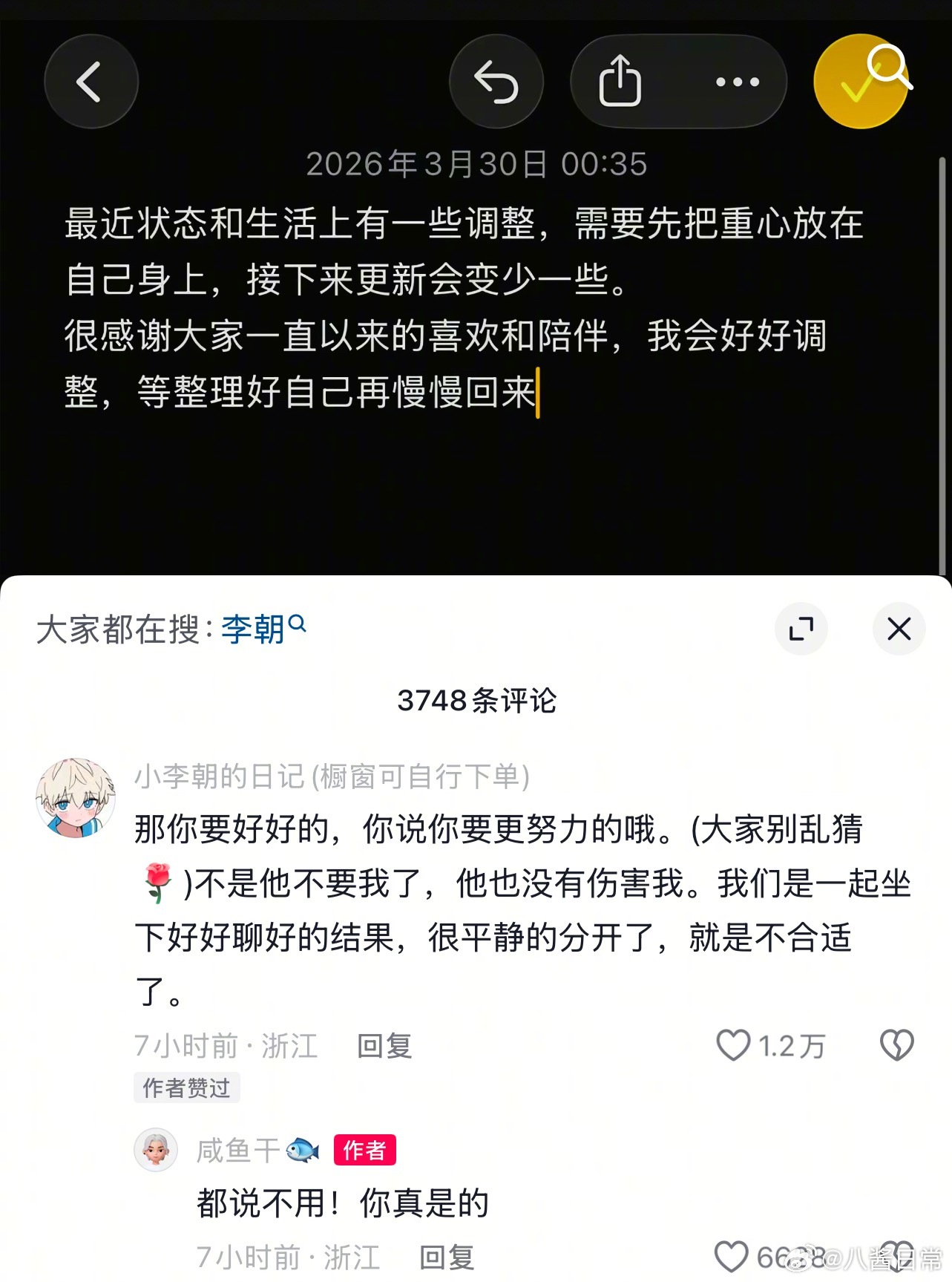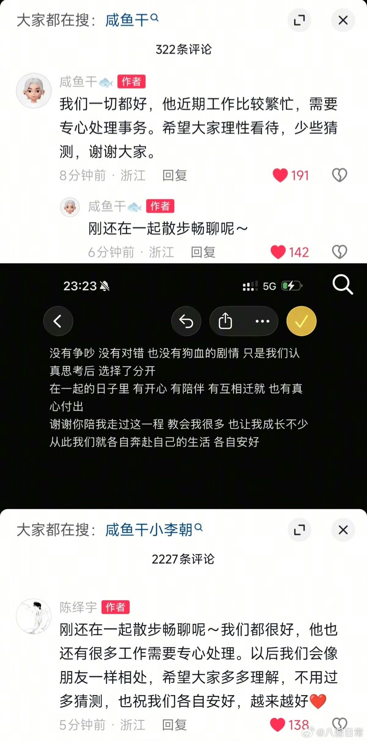 有人认识小李朝和咸鱼干吗?两个人分手了