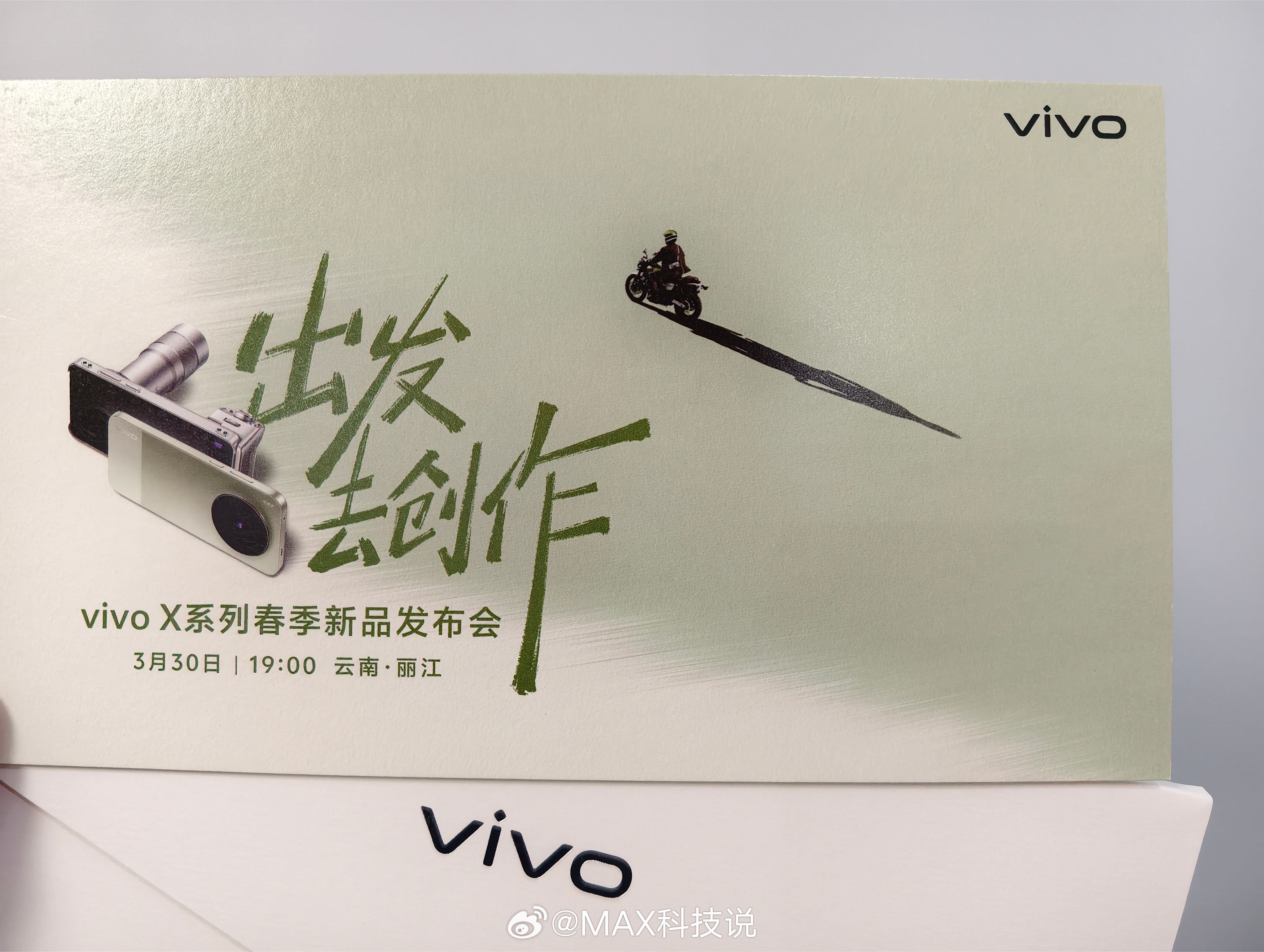 vivo X300系列发布会邀请函,一个信封卡片,主打绿色和创作,发布会地方选的