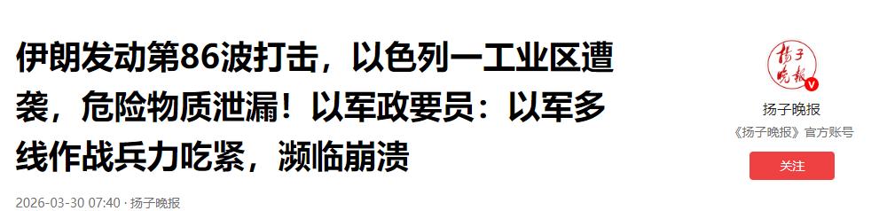 以色列南部昨夜火光冲天,毒气蔓延。三支专业救援队连夜扑火,忙活了好几个小时。以色列搬起石头砸自己的脚! 3月29日晚,导弹呼啸而至,砸向贝尔谢巴以南的内奥特霍瓦夫工业区。这里是以色列化学生产和危险废料处理的核心地带。 导弹一落地,大火瞬间吞噬厂区,危险物质直接泄漏,以色列消防部门急了,赶紧让当地居民躲进室内,千万别出来吸毒气。 有意思的是,这次是以色列媒体先捅出来的,以往挨炸总爱捂盖子,这次主动卖惨,大概率是在为接下来的雷霆报复造势,也顺便给国内做个风险动员。 到了3月30日,伊朗大大方方认领了,这就是“真实承诺-4”第86波行动,五枚弹道导弹直扑贝尔谢巴,打得极其精准。死磕这里,是因为它是“网络首都”。 英特尔等巨头都在这扎堆,8200网络间谍部队也要搬来,打高科技心脏就是打未来。去年美以搞伊朗核设施时,伊朗就拿这里的科技园撒过气。 以色列南部藏着的宝贝不止这一个。往东看,迪莫拉反应堆就在那里,那是核心核武研发中心,伊朗导弹早瞄过这里,威慑意味极浓。 再往南是埃拉特,以色列唯一濒临红海的命脉通道,胡塞武装天天拿导弹问候这里。掐住埃拉特,就是掐住以色列的脖子。 现在的局势,早就不是什么“影子战争”了,双方全把底牌亮在了桌面上。以色列死盯德黑兰附近打。 开战到现在,伊朗已损失一百多名大学师生。以色列想拔掉核武尖牙,伊朗的还击同样刀刀见血。现在的重中之重,就是猛捶以色列南部。 南部正拼命搞“南部大开发”。伊朗的导弹,直接把这个人口南迁的战略布局炸出了窟窿。不仅如此,伊朗还顺手敲打了两家涉美军工企业。 断美军后勤,削弱美军支撑,这招釜底抽薪够狠。多线协同的包围圈已经成型。胡塞武装封锁红海,伊朗正面硬刚,彻底分散了以色列的防御力量。 以色列引以为傲的多层防空系统,面对这种复合型攻击越来越吃力。伊朗弹道导弹不断升级,突防能力直线上升。攻防技术博弈进入了最惨烈的阶段。 双方都在死磕对方最核心的战略资产。伊朗只要继续把战火烧在以色列的工业和科技命脉上,以色列的报复就会越来越疯狂。中东的火药桶,这回是真的要炸透了。