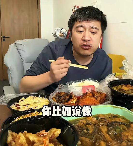 感觉他是真的累,吃饭的力气都没有了。 看他很多吃饭的视频都是在用胳膊支撑着。