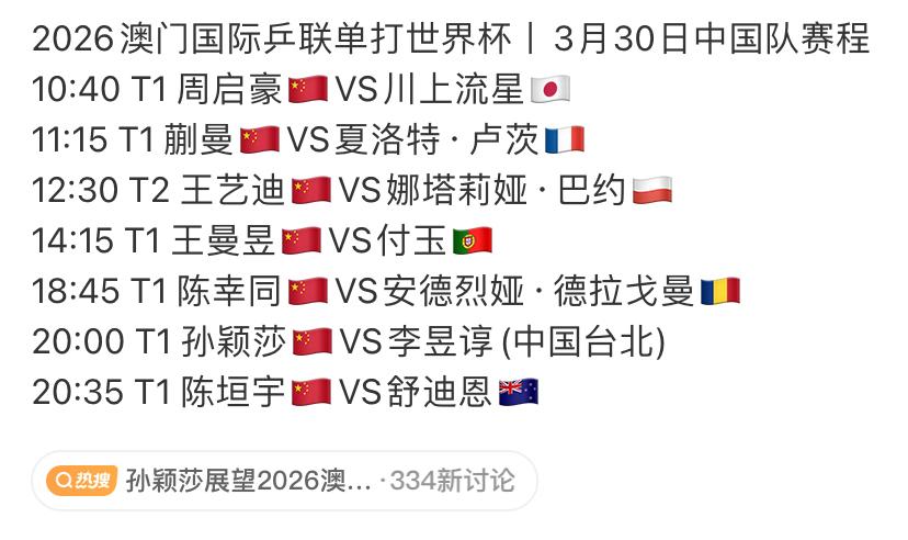 澳门世界杯首日,五局三胜。 非洲一哥0-3惨败普卡,此前发声, WTT赛事赚不到钱,成本太高。 在2026澳门单打世界杯男单小组循环赛中,普卡3-0击败阿鲁纳,比分为11-4,12-10,11-6。 要想晋级16强,就要在小组赛脱颖而出。阿鲁纳要加油了,否则来回成本又回不来了。 我女儿说:“比赛前一定要做好充分准备,非洲一哥曾在没有教练情况下,一直坚持比赛,很厉害”。 我的印象是,普卡跟阿鲁纳水平差不多,没想到输的这么干脆,好好总结,继续加油。 两人未交手过,如今,阿鲁纳0-1普卡。 此外,国乒今天7人出战,点赞为他们加油,取得开门红好成绩。