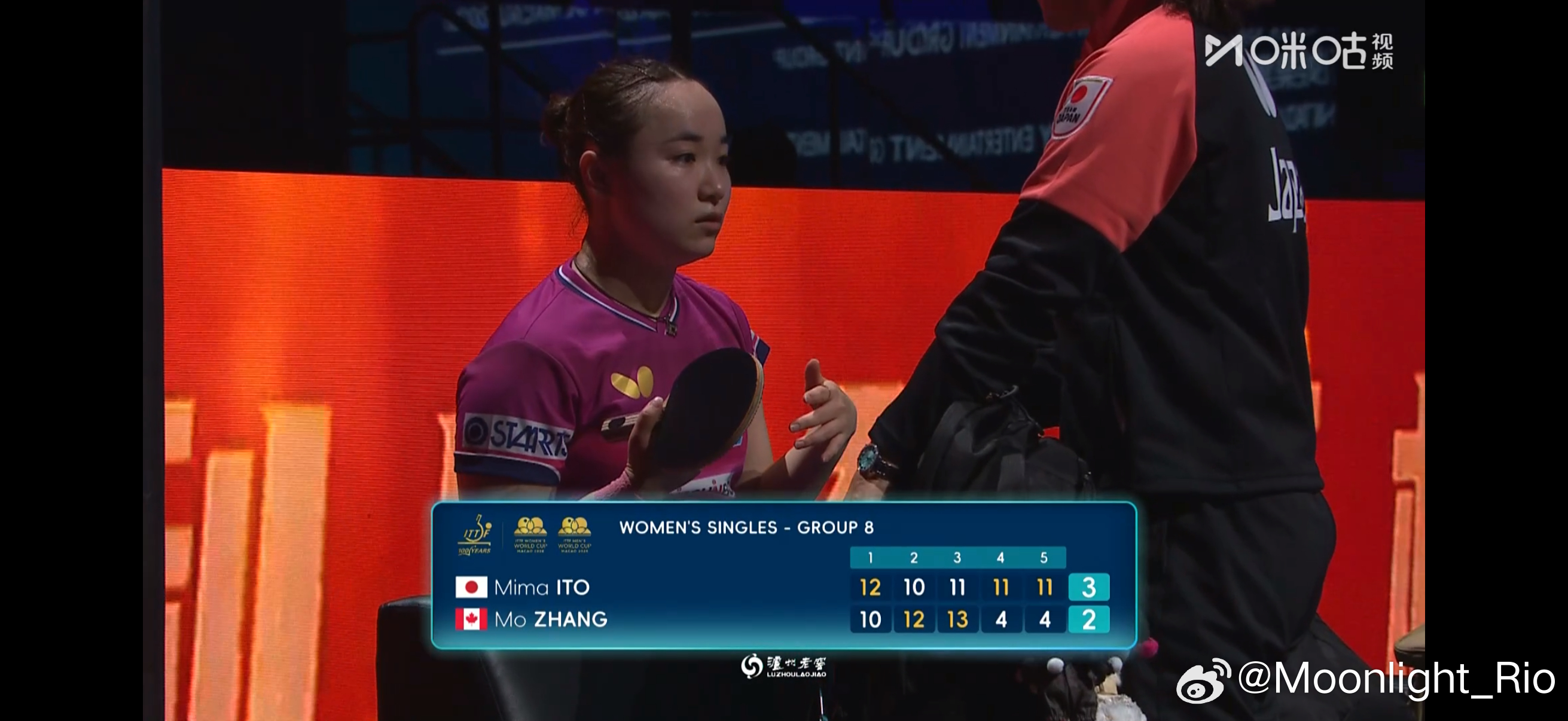 澳门世界杯2026 女单小组赛第一轮:🇯🇵伊藤美诚3比2张默🇨🇦(12-