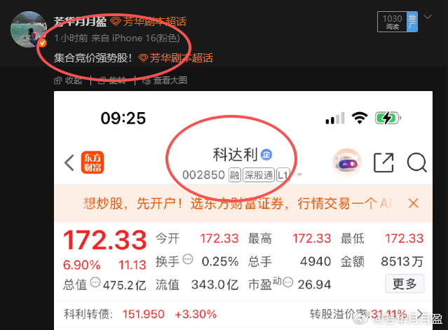 芳华开盘前提示的两只强势股,其中$科达利 sz002850$ 已成功封板,有上车的宝子吗?芳华剧本