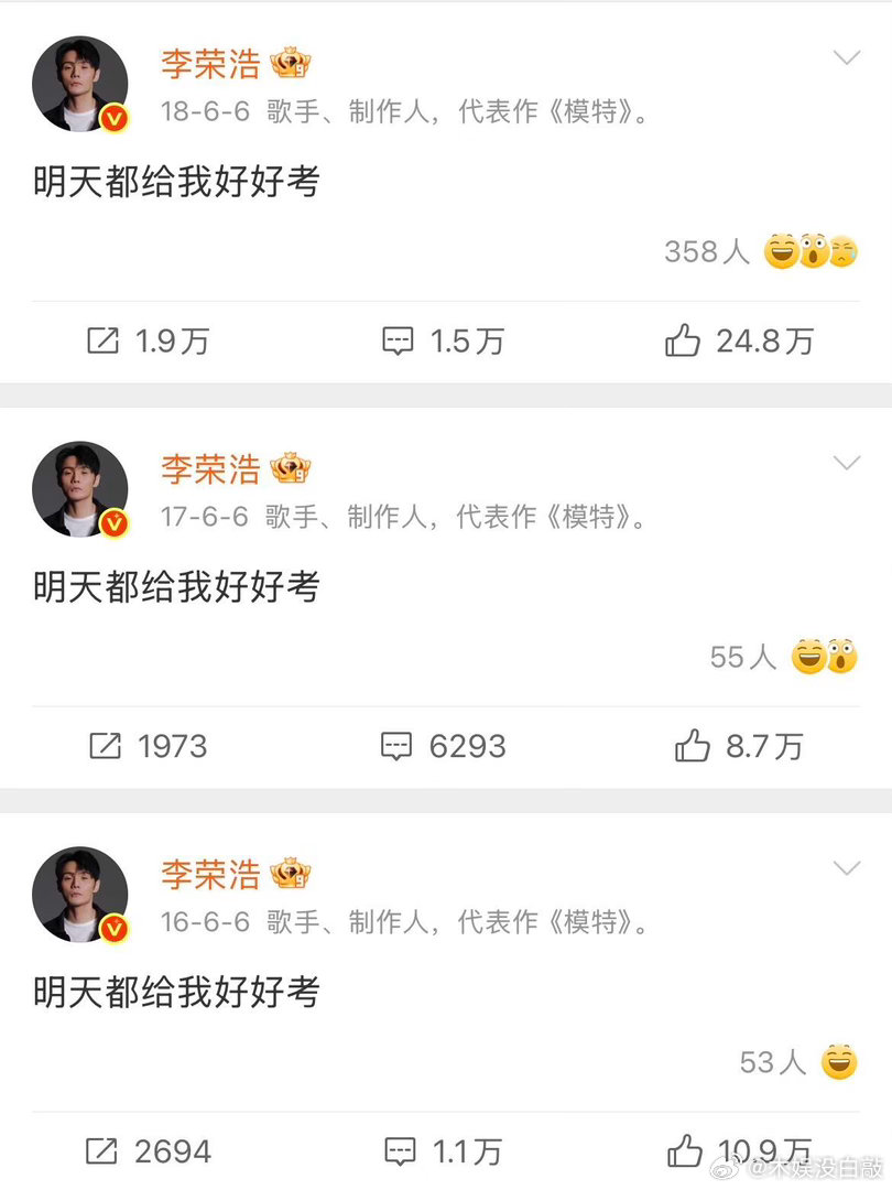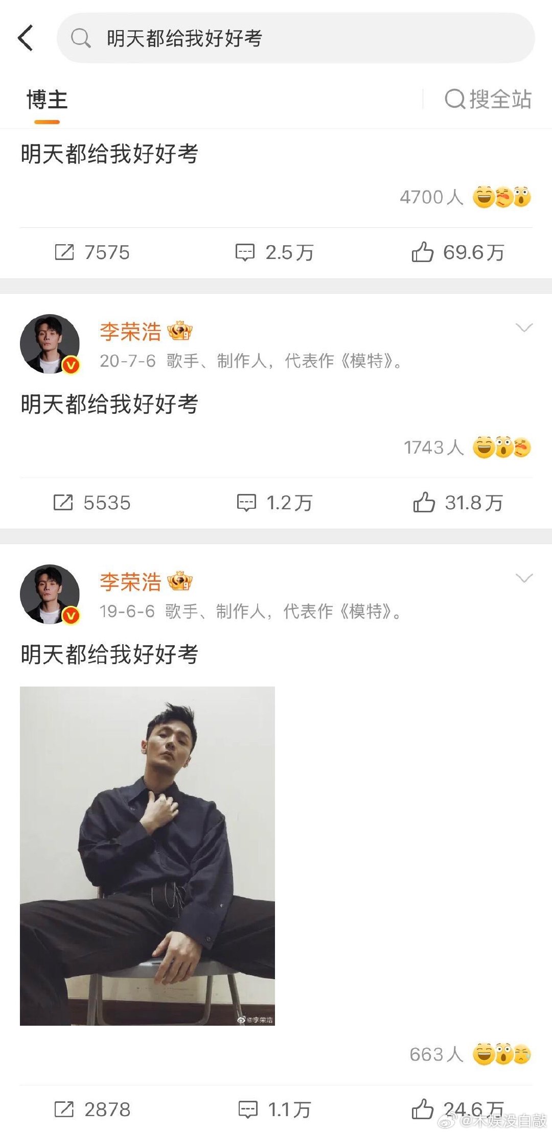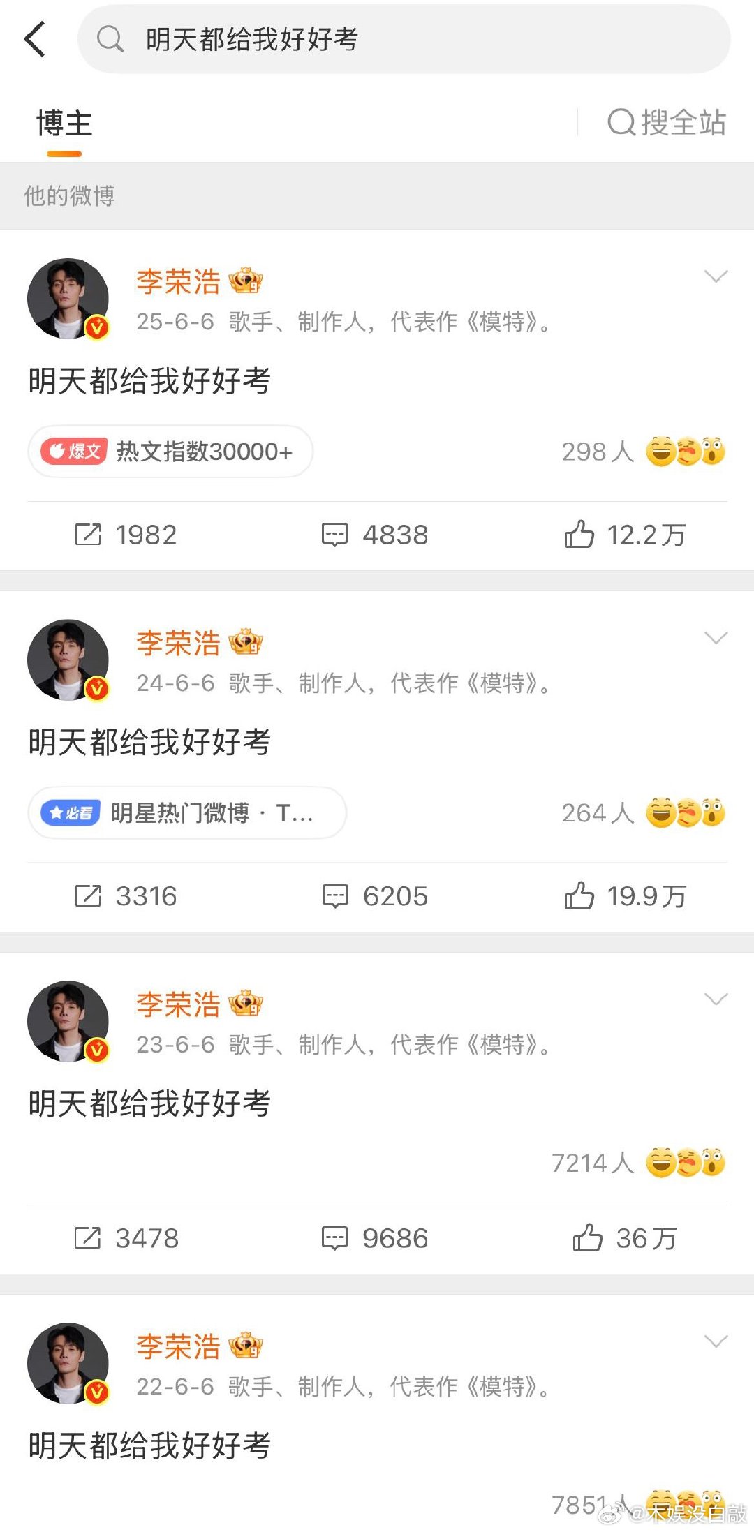 李荣浩——高考届最严厉的父亲 从2016年开始,连续十年每年高考前雷打不动发同一