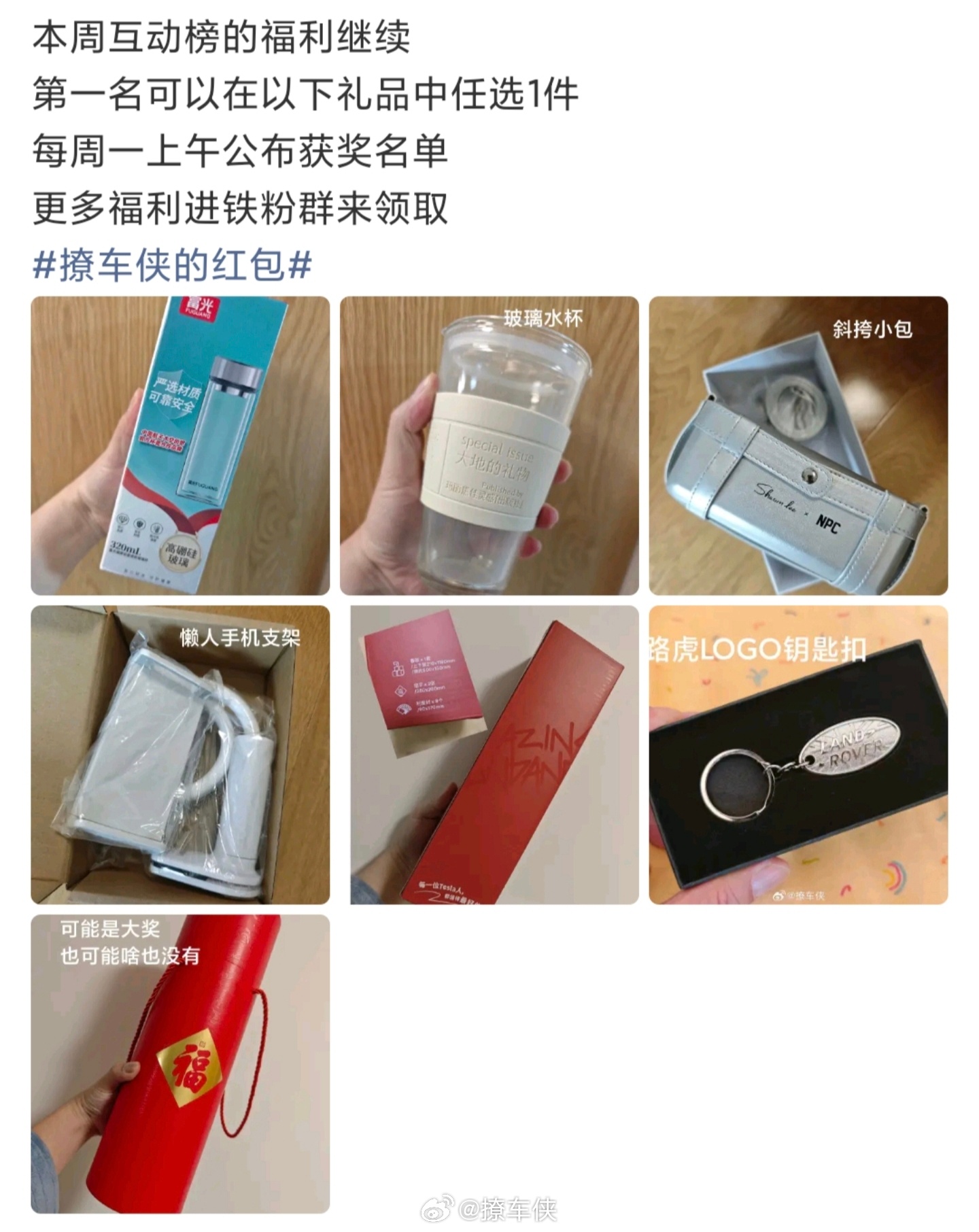 恭喜获得上周互动榜第一,福利礼品自己挑,私信我快递地址,本周活动继续撩车侠的红包