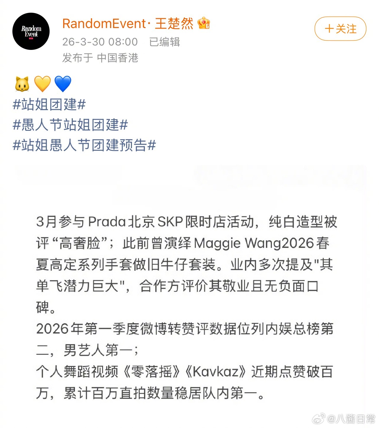 因为王楚然站姐发了一个愚人节朱志鑫预告,苏新皓粉丝在王楚然微博转发区闹