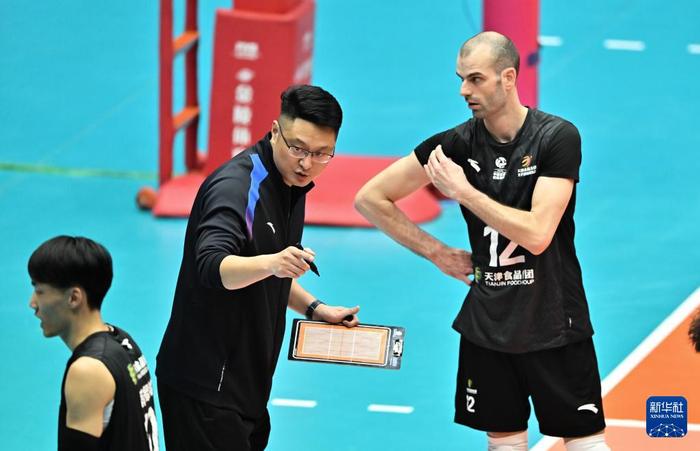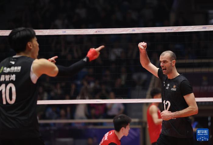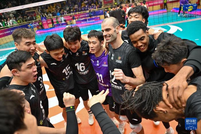 男排超级联赛总决赛冠亚军决赛首回合:天津食品集团胜保定沃隶 3月29日,天津食品集团队球员及教练员在赛后合影庆祝3月29日,在2025-2026赛季中国男子排球超级联赛总决赛冠亚军决赛首回合比赛中,天津食品集团队主场3比2战胜保定沃隶队。